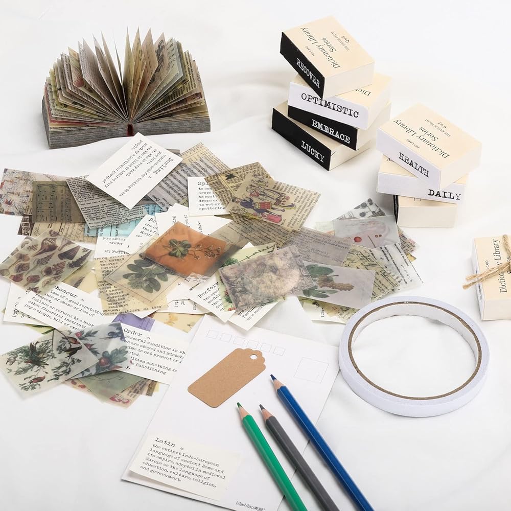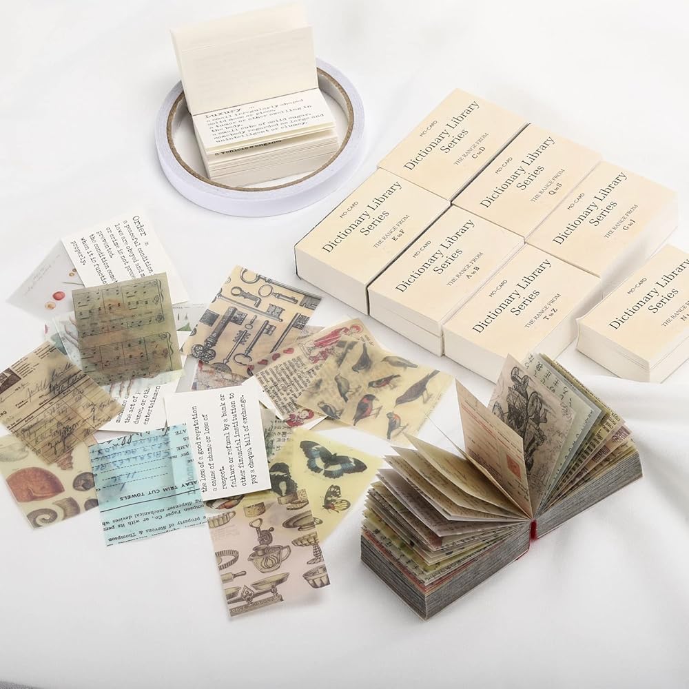 العبوة: 800 قطعة ورق سجل القصاصات قاموس مختلف، 367 قطعة من الورق الزخرفي العتيق وشريط مزدوج الجانب