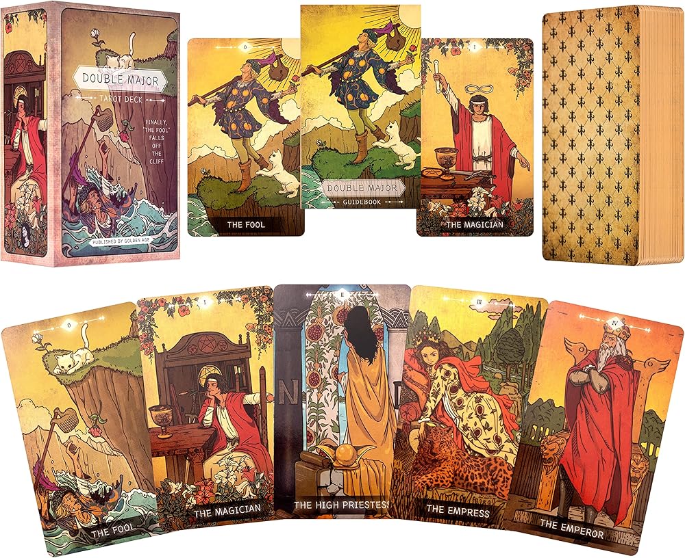 يوصى به لـ ◆ نظرًا لأن هذه المجموعة تتبع قاعدة نظام الانتظار ولكنها لا تتضمن بطاقات أركانا الصغيرة، فإن Double Major Tarot Deck مناسب خصيصًا للمبتدئين أو الباحثين الروحانيين الذين يقرؤون بشكل أساسي باستخدام البطاقات الرئيسية وبطاقات المحكمة.