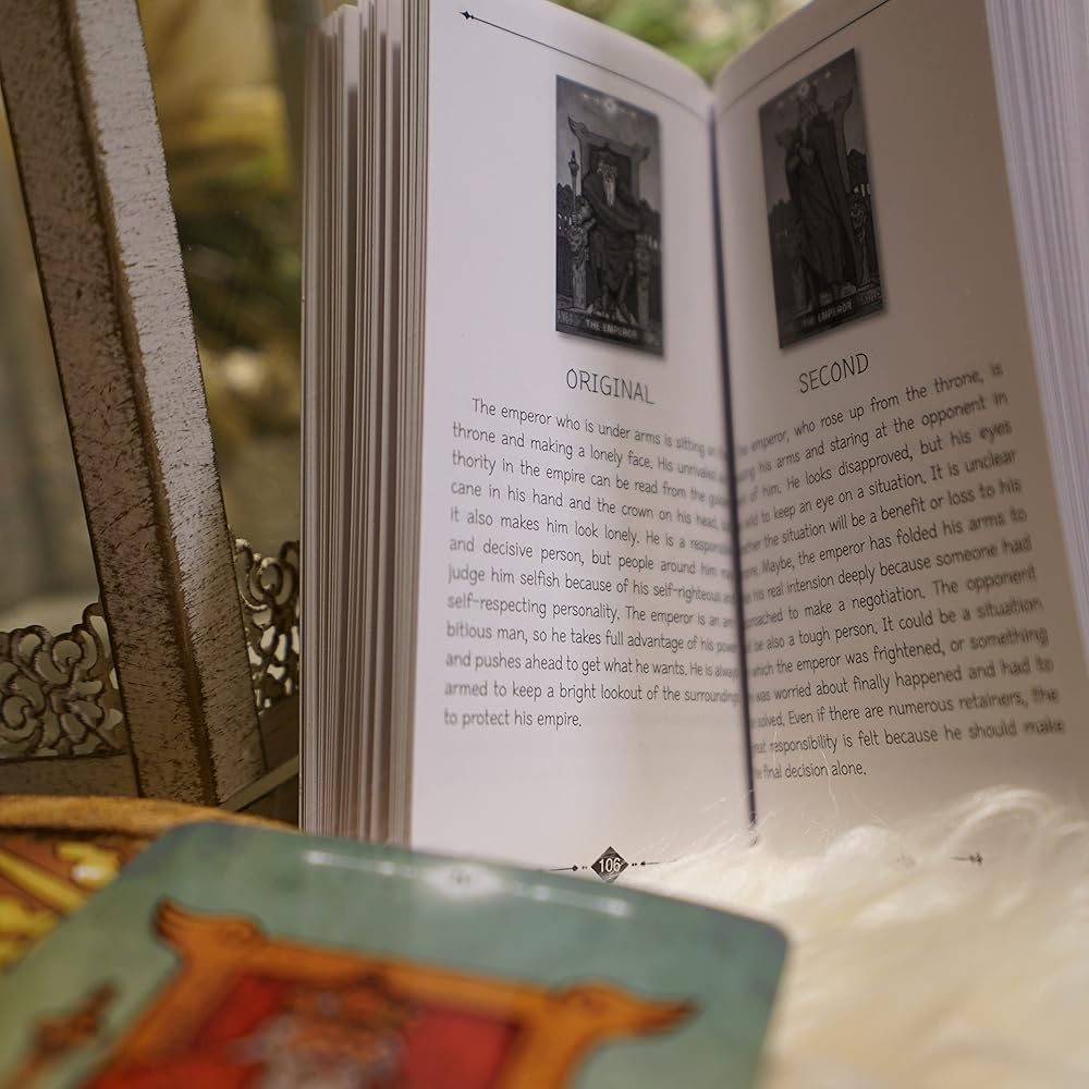 يرجى ملاحظة ◆ إذا كنت شخصًا روحيًا وتعرف كيفية قراءة بطاقات التارو، فستتمكن من تمييز الفرق بين البطاقة الأصلية والبطاقة الثانية على الفور. إذا كنت مبتدئًا، فلن يكون الأمر صعبًا للغاية لأننا وضعنا صورًا للبطاقات مع الشرح في دليل إرشادي. يمكنك أيضًا التمييز بين البطاقة الأصلية والثانية من خلال الاختلاف البسيط في الرسم التوضيحي للأرقام الرومانية الموجود أعلى كل بطاقة.
