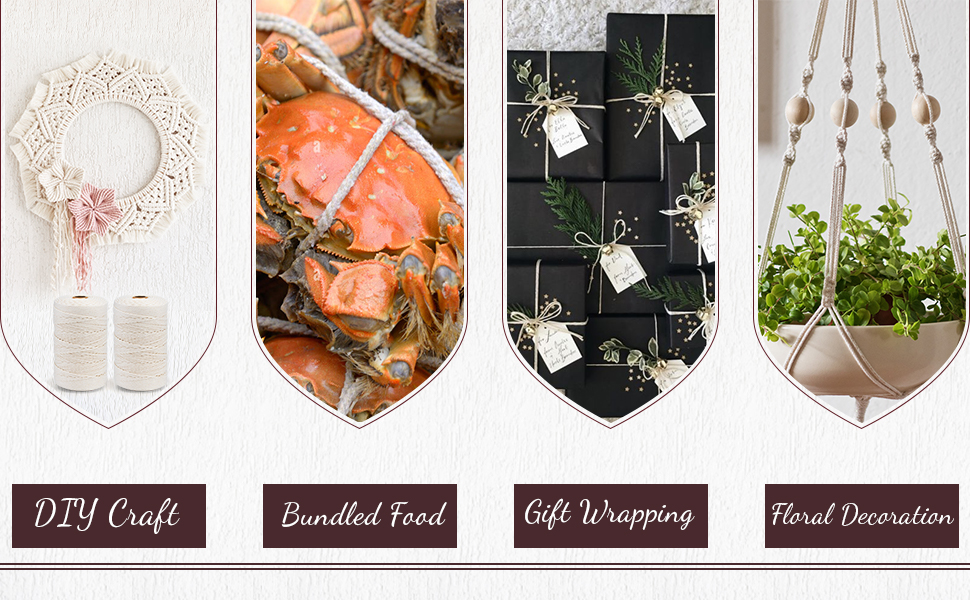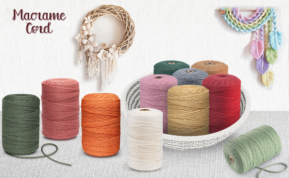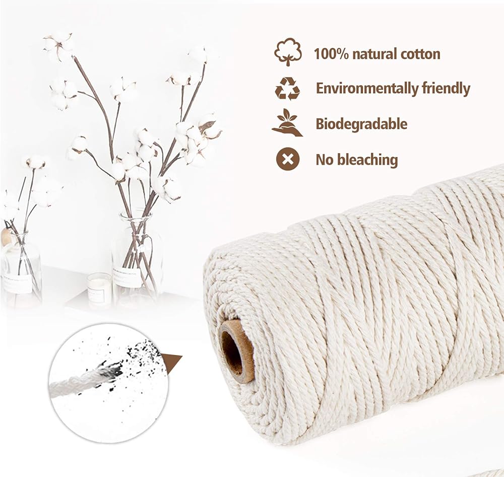 متعدد الأغراض - حبل الحبل القطني هذا مثالي لصنع مشاريع حرفية مختلفة، مثل صائد الديم، والتعليق على الحائط، وتغليف الهدايا، والمنسوجات، وشماعات النباتات، وديكورات الزفاف البوهيمية، وصناعة المجوهرات، والبستنة، وديكورات المنزل في عيد الميلاد، إلخ.