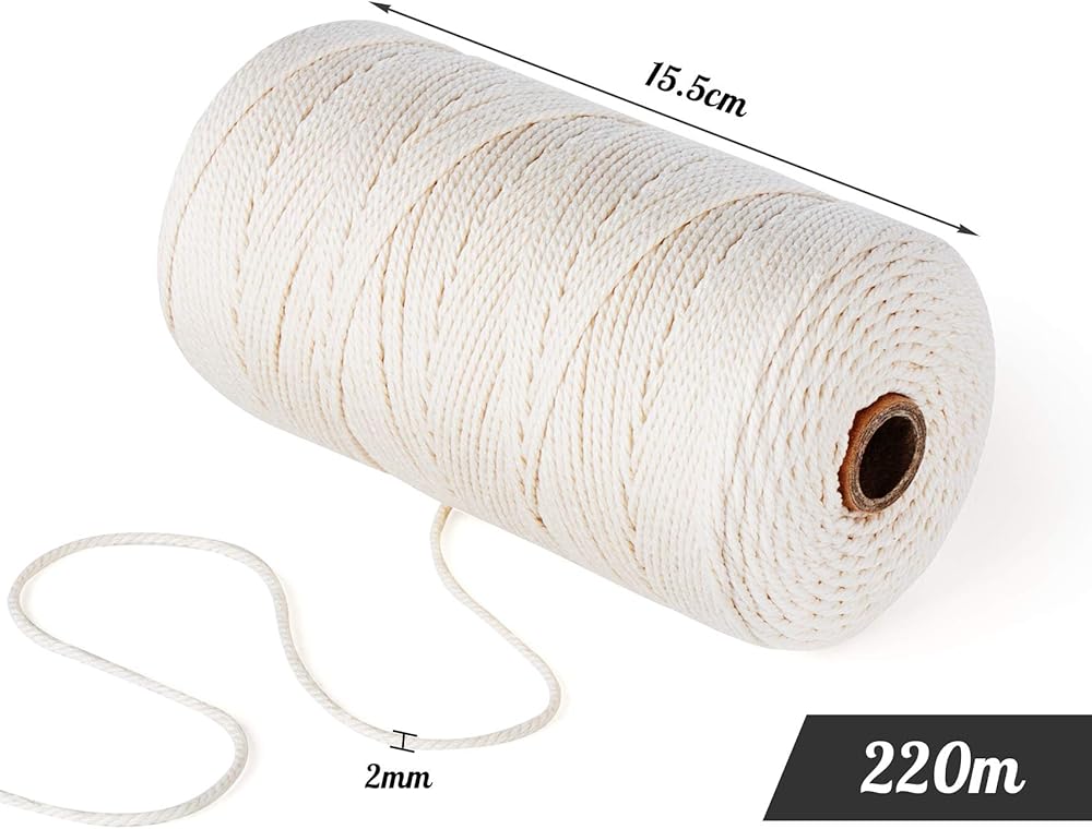 بكرة حبال ماكرامي - حبل قطني بطول 722 قدمًا / 240 ياردة، بقطر 2 مم، طويل بما يكفي لصنع العديد من ديكورات الجدران ذات الحجم الطبيعي.