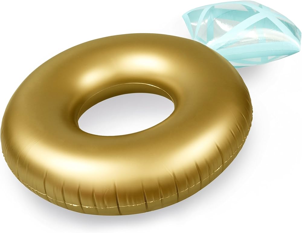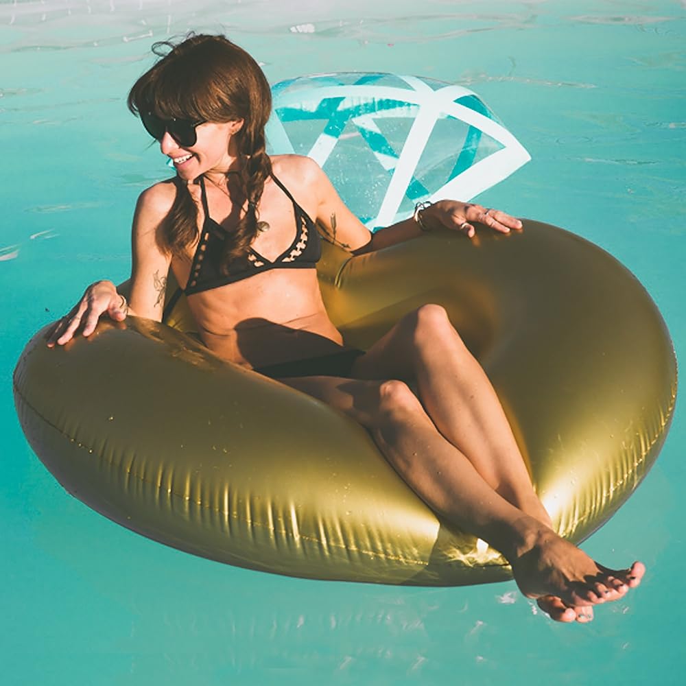 عوامة حمام السباحة العملاقة - شكل خاتم الماس الذهبي | عوامات مائية قابلة للنفخ بقطر 50 بوصة لحفلات حمام السباحة - من فركتال
