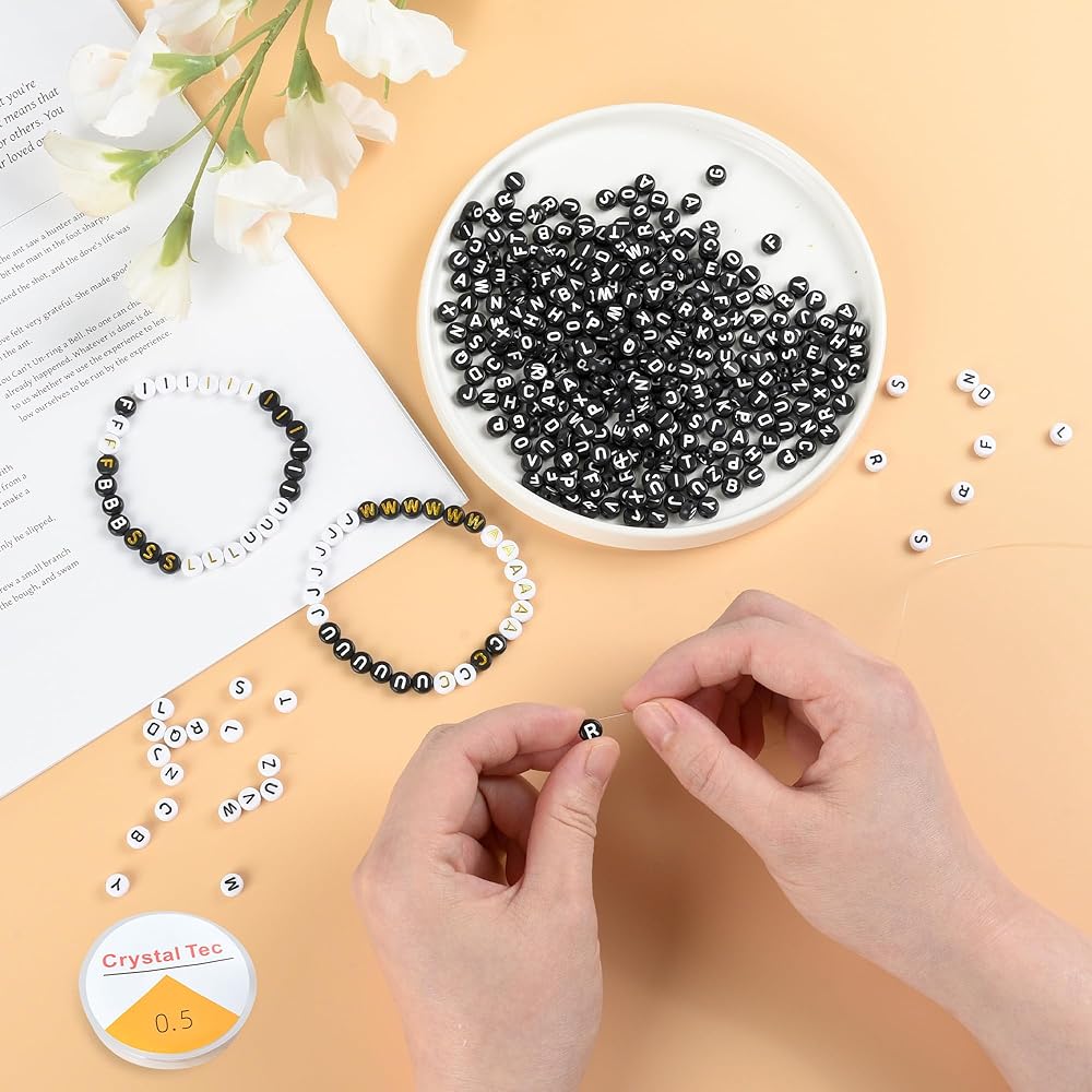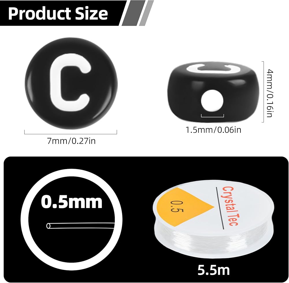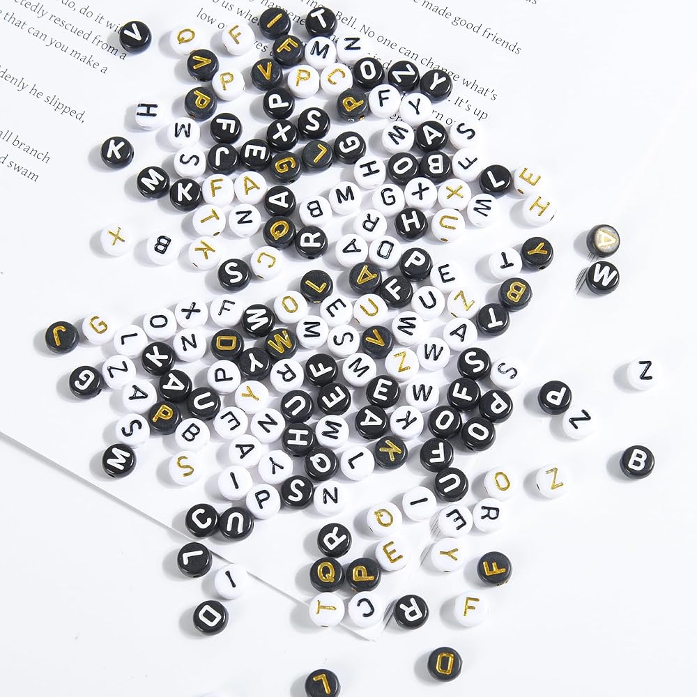 تأتي مع 1000 قطعة من الخرز الأبجدي الأسود الذهبي من A إلى Z للأساور وخيط مطاطي واحد. مجموعة خرز الحروف المثالية سهلة الاستخدام حقًا لصنع المجوهرات!