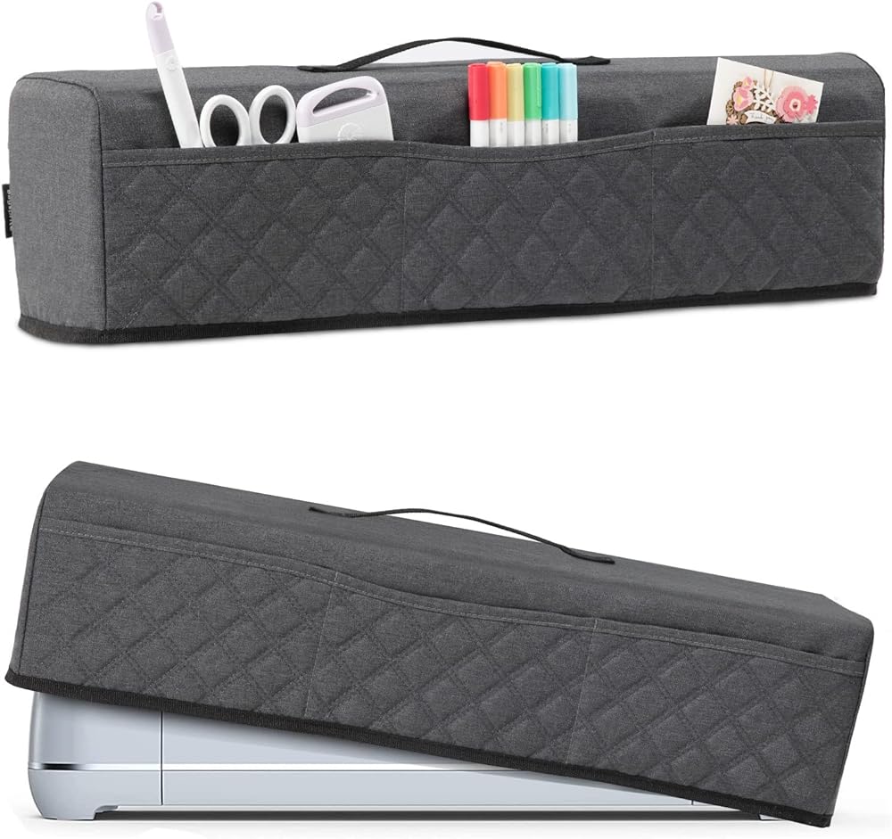 غطاء غبار BAGSPRITE متوافق مع Cricut Maker، Maker 3، Explore Air 2، Explore 3، غطاء Cricut مع 3 جيوب لملحقات Cricut (رمادي)