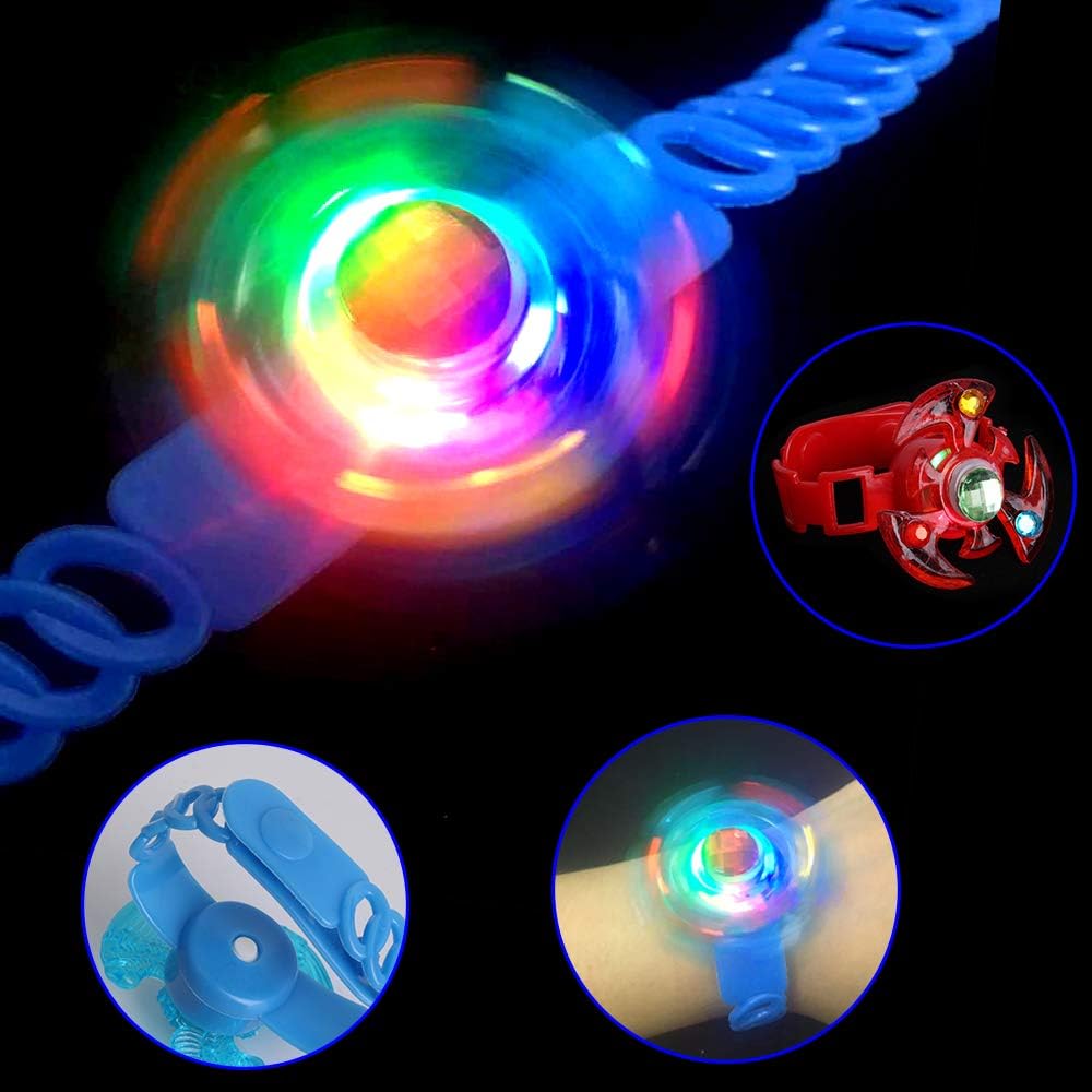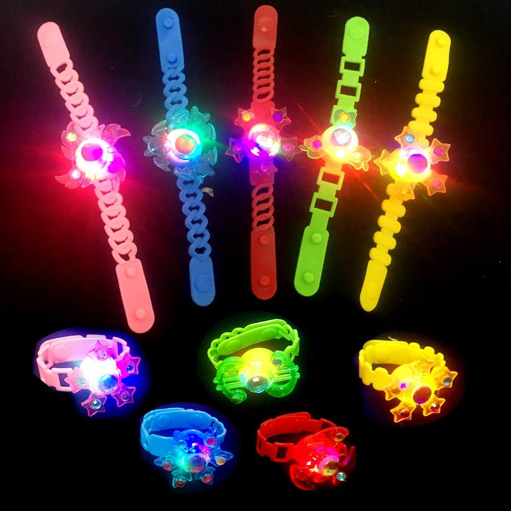 🤶العديد من الكمية - 18 قطعة من ألعاب السوار المضيئة. هناك 11 نمطًا مختلفًا و5 ألوان لأساور LED هي الأحمر والوردي والأزرق والأخضر والأصفر. هذا المزيج الممتع من أساور الألعاب الدوارة المزودة بمصابيح LED والقلق محبوب لدى الأطفال ومناسب لجميع الأعمار.