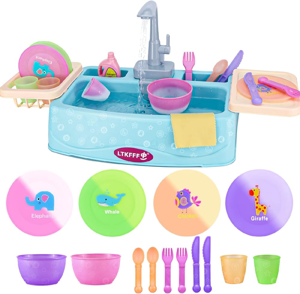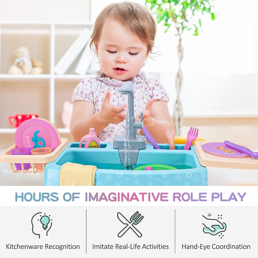 تغيير لون اللعب بالوعة مع المياه الجارية للأطفال الصغار 1-3، لعبة مطبخ التظاهر طفل صغير سن 2-4، طفل لعب دور غسالة الصحون الكهربائية مع مجموعة تنظيف صنبور العمل الهدايا للبنين الفتيات للعب المياه
