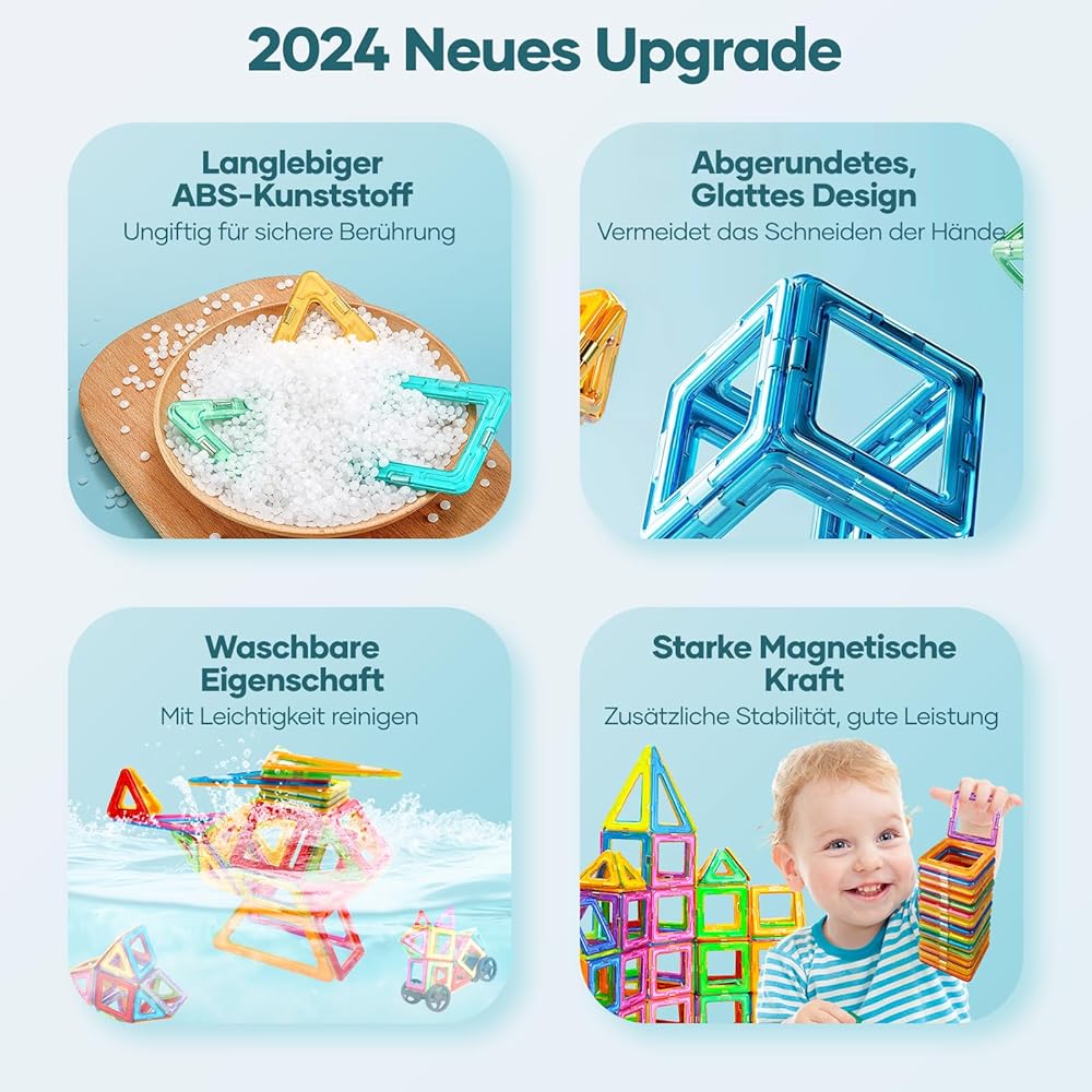 🎄مجموعة لعب فعالة من حيث التكلفة: توفر مكعبات البناء المغناطيسية مجموعة متنوعة من الأشكال والمرح. تتضمن المجموعة 54 شكلاً هندسيًا، ومجموعة واحدة من إطارات السيارات، و42 بطاقة (حرف/أرقام). مثالية للألعاب التعليمية لمرحلة ما قبل المدرسة STEM.