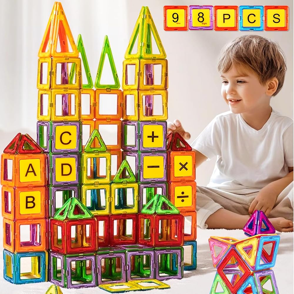 Assark 98 قطعة من البلاط المغناطيسي، مكعبات مغناطيسية للأطفال، مجموعة مكعبات بناء قلعة ثلاثية الأبعاد لعمر 3،4،5،6،7،8 سنوات من البنات والأولاد، ألعاب العلوم والتكنولوجيا والهندسة والرياضيات لمرحلة ما قبل المدرسة للهدايا
