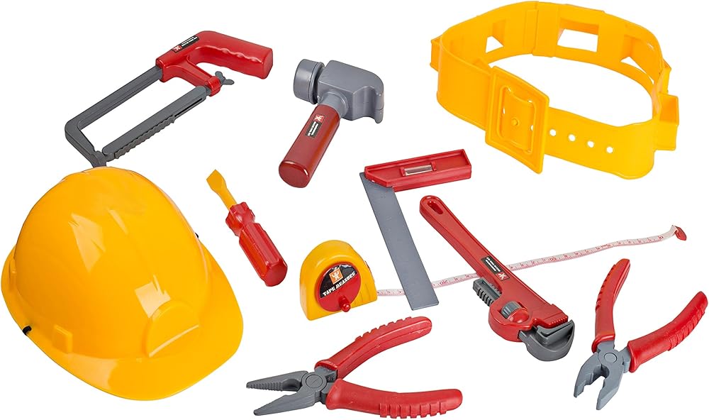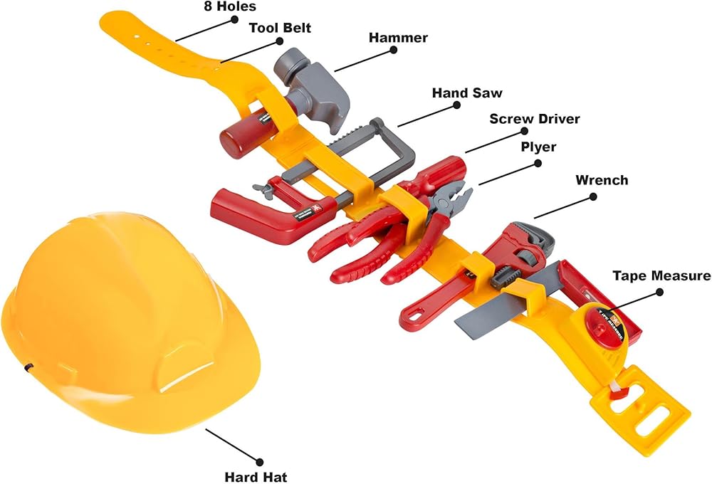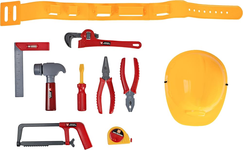 أفضل لعبة مجموعة أدوات يدوية مع حزام وقبعة صلبة وشريط قياس