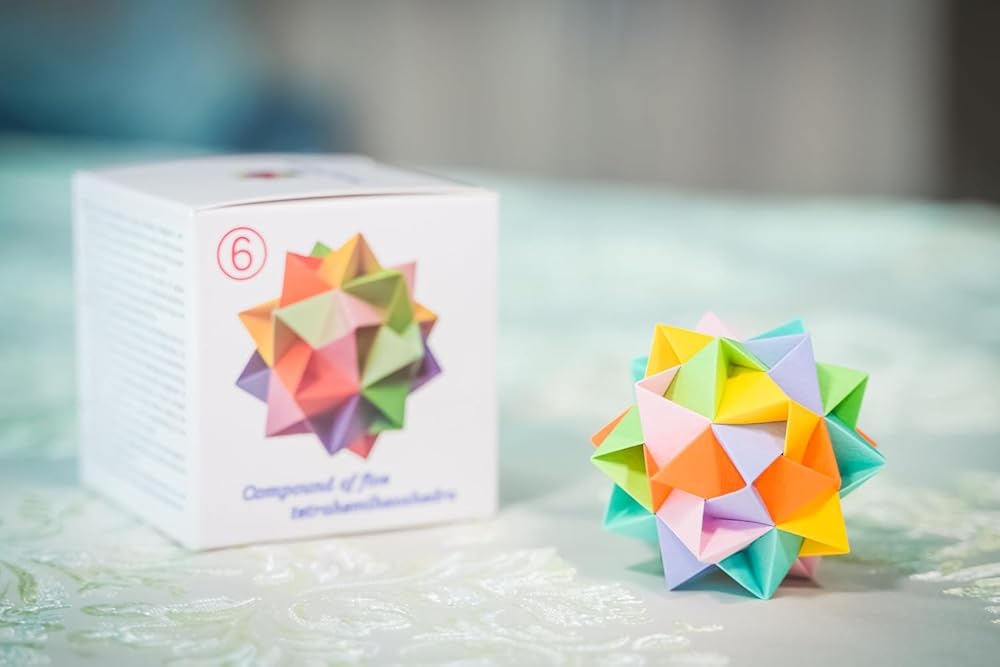 نسج متعدد السطوح نموذج رقم 6: مركب من خمسة أشكال رباعية الأوجه أوريغامي لغز أنماط هندسية حرفة ورقية