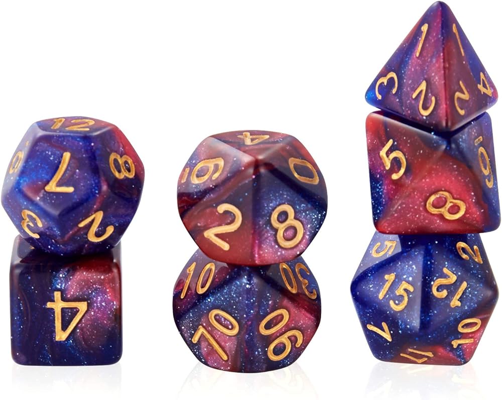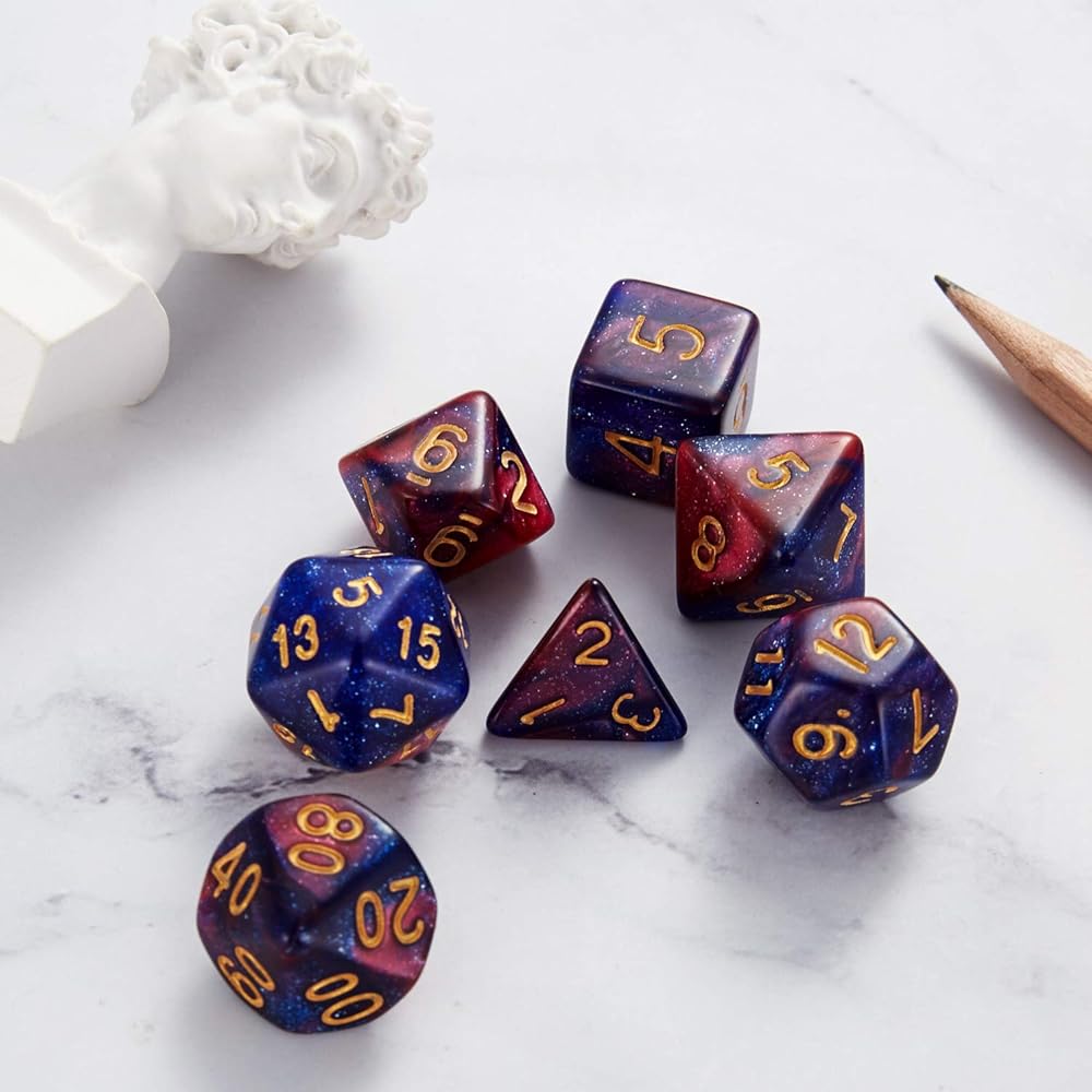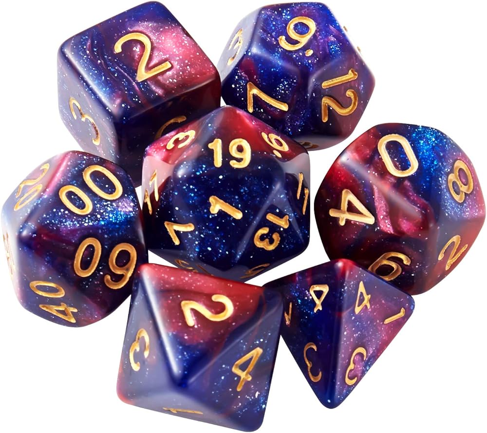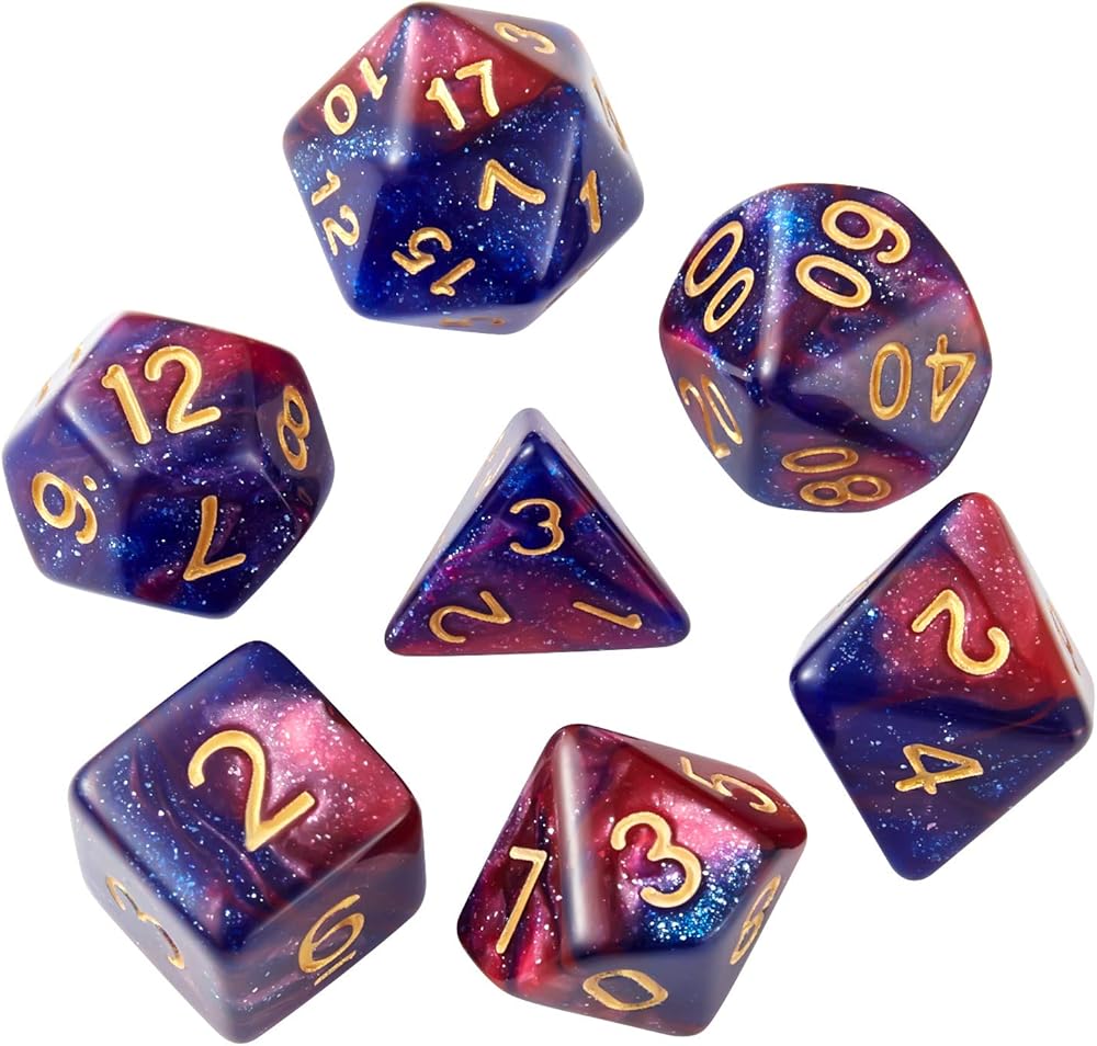 ★Starry Sky D&D Dice: يمزج النرد متعدد السطوح آر بي جي هذا بين الأزرق والفوشيا مع اللامع، مما يجعل النرد dnd أكثر تميزًا ورائعًا.