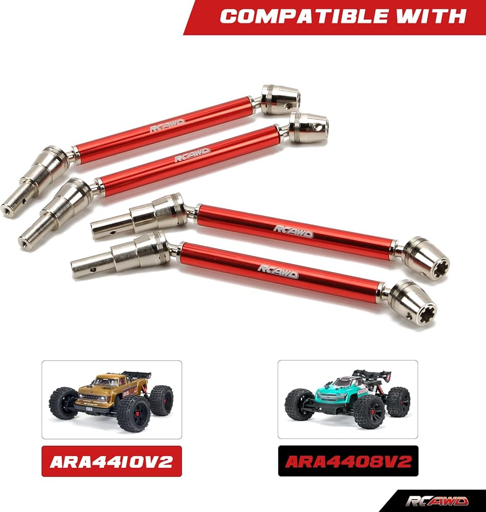 ار سي اي دبليو دي اعمدة توجيه سي في دي 1/10 لترقيات اوتكاست 4S V2 وكراتون 4S V2 (تناسب فقط V2)، اجزاء من الالومنيوم لمحاور ارما #ARA311147#ARA4408V2#ARA4410V2، احمر