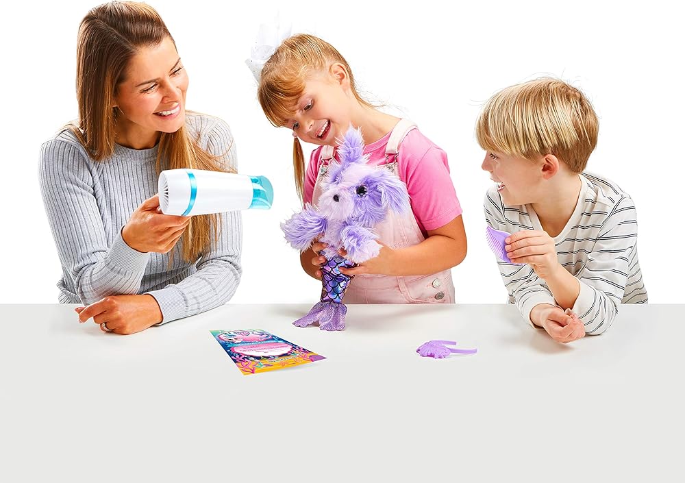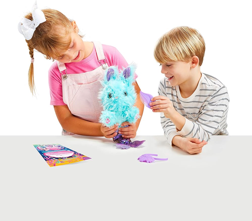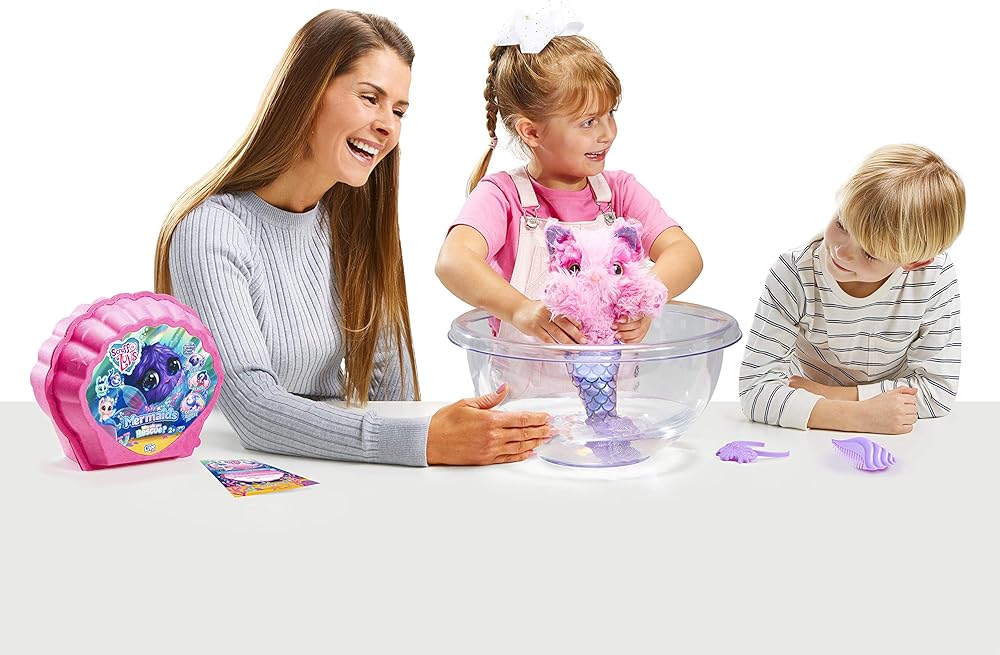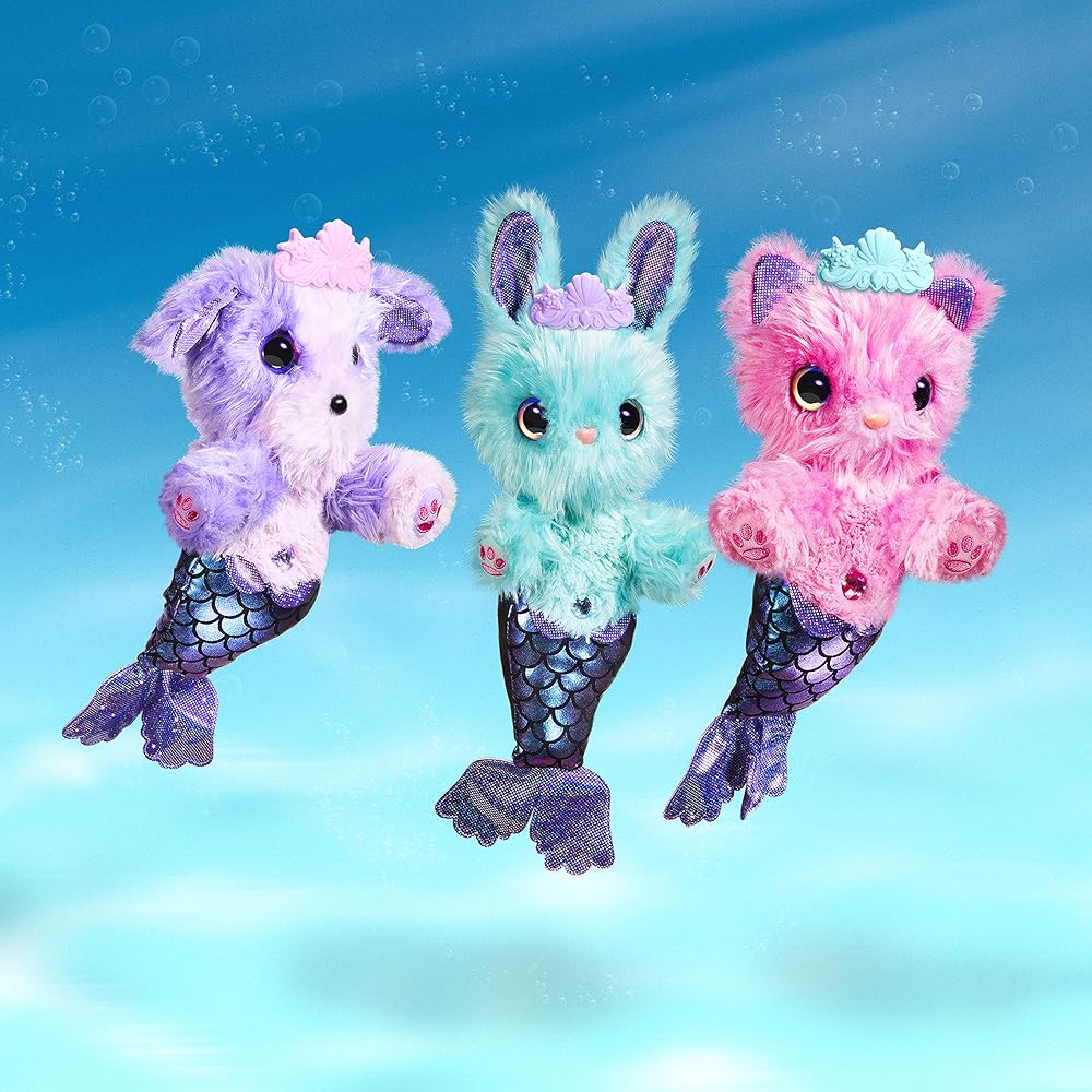 أكثر حوريات البحر روعة في انتظارك لإنقاذهم. تم التخلي عن حورية البحر سكراف-ايه-لوفز وأخذت مأوى داخل صدفة البطلينوس. إنهم بحاجة إلى مساعدتك لإنقاذهم والعناية بهم. يوجد داخل الصندوق حيوان أليف حورية البحر غامض ينتظر إنقاذه! من ستنقذ؟ هل لديك كلب حورية البحر أو قطة حورية البحر أو أرنب حورية البحر؟ يصل حيوانك الأليف على شكل حورية البحر ككرة حزينة من الفرو غير اللامع، ولكن بمجرد أن تستحمه سيتغير لونه بطريقة سحرية! بمجرد تجفيفها، قم بتمشيطها وحبها وستكتشف أي نوع من الحيوانات الأليفة هي حقًا! كل حورية البحر سكراف-ايه-لوف لها ذيل لامع جميل وجوهرة لعبة لامعة في زر البطن! استخدم الملحقات لجعلها تبدو رائعة. ضع تاجهم على رأسهم واستخدم مشطه الخاص على شكل صدفة لتصفيف حيوانك الأليف الجديد. ذيل حورية البحر الخاص بك قابل لاتخاذ الوضعيات أيضًا حتى تتمكن من وضعه بعد جلسة العناية به وجعلها تبدو مميزة للغاية! تأتي كل دمية حورية البحر سكراف-ايه-لوف مع شهادة تبني لك لملئها وجعلها خاصة بك! مع الحب والرعاية، ستكون هذه الحيوانات الأليفة السحرية تحت الماء هي صديقك المفروش للأبد!