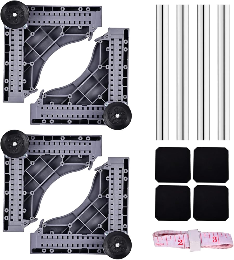 حامل ثلاجة صغير، أثاث متعدد الوظائف، قاعدة دوارة دوللي، قاعدة متحركة وقابلة للتعديل، قاعدة تلسكوبية لخزانة غسالة ومجفف الثلاجة (4 أقدام)