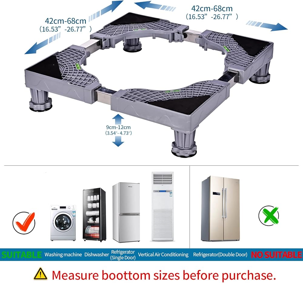 • 【متعدد الوظائف】حامل القاعدة مناسب للغسالة والمجفف، والفريزر والثلاجة، والثلاجة الصغيرة، والخزانة أو غيرها من الأثاث. إنها سعة وزن كافية للعديد من أنواع الأجهزة المنزلية