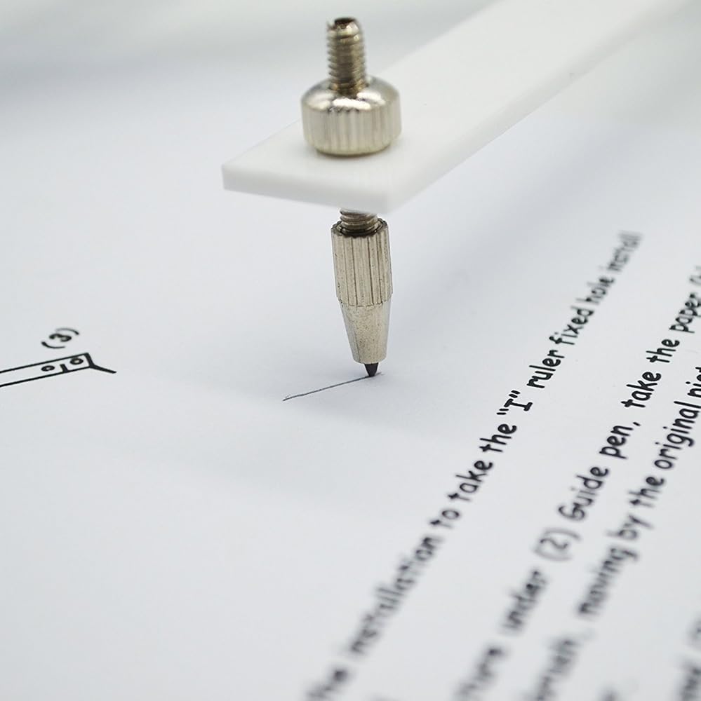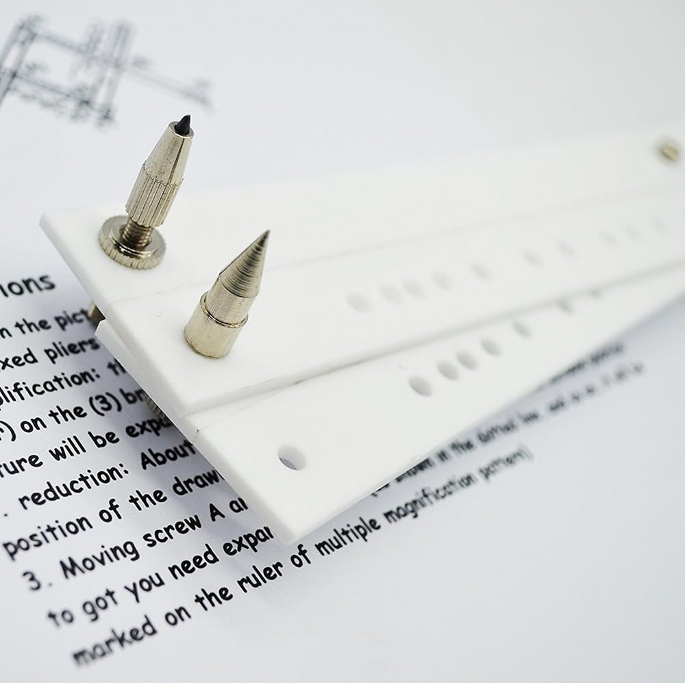 3. حرك المسمار A والمسمار B و(2) قلم التوجيه إلى الوضع المناسب للحصول على نمط التكبير المطلوب. (يشير الخط المنقط لرسم المنصة إلى أنه يمكن الحصول على أنماط التكبير المحددة على المسطرة وما إلى ذلك. ).
