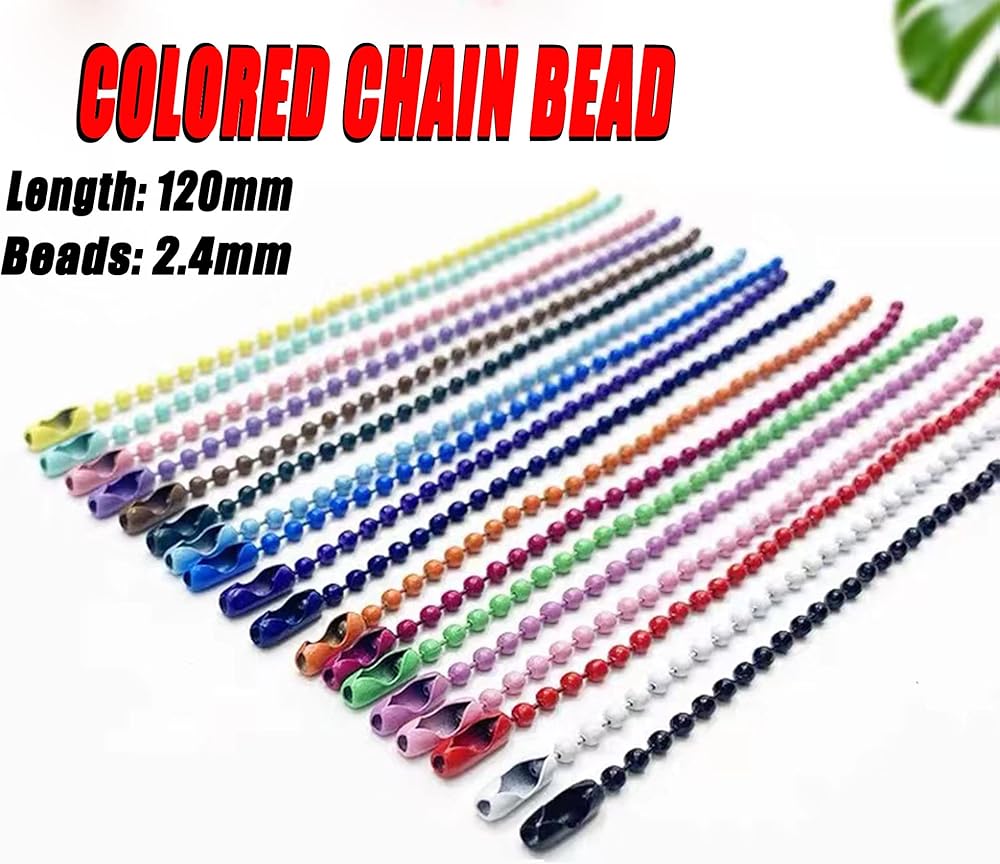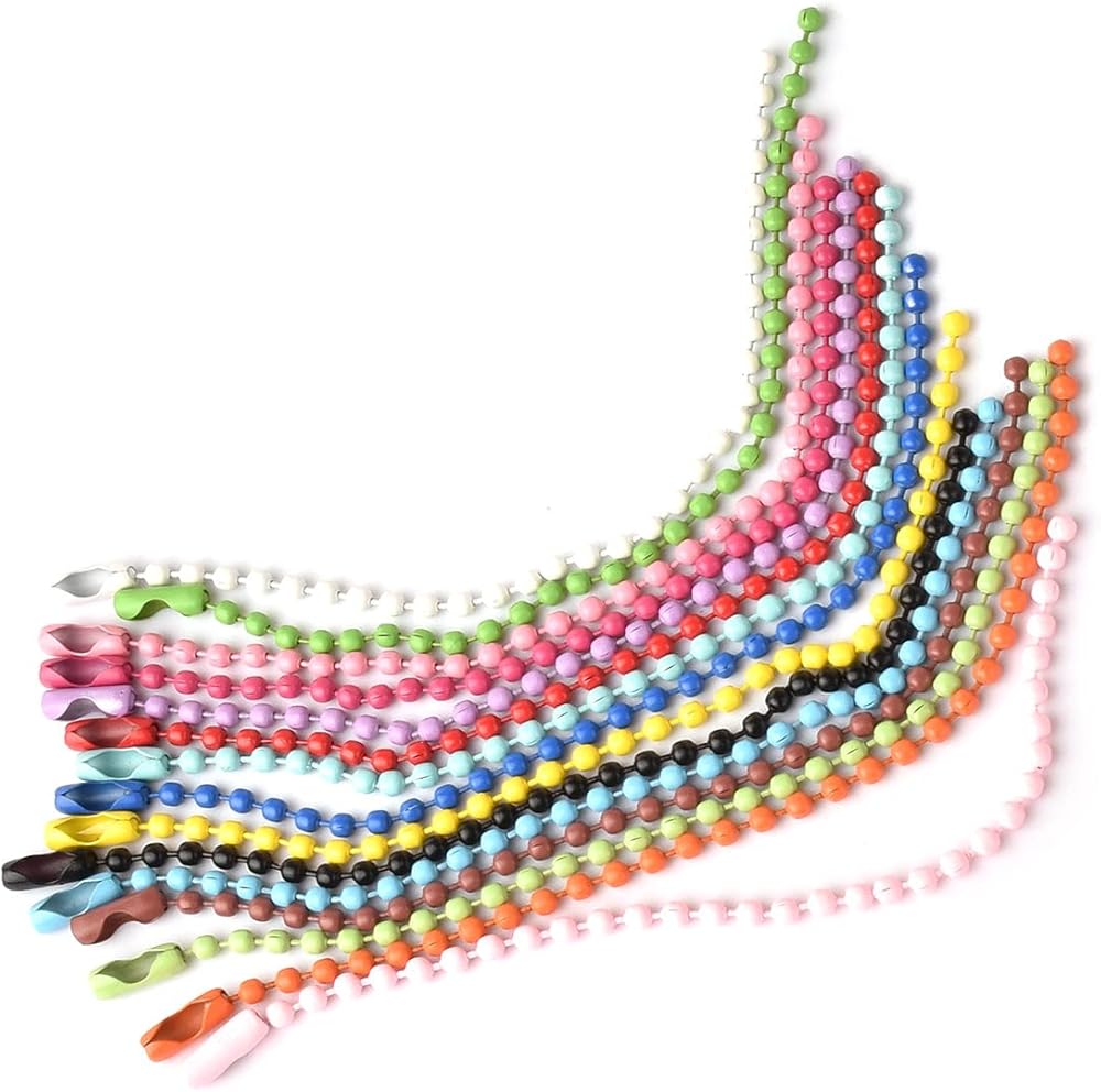 العبوة: تتضمن العبوة 100 قطعة سلسلة خرز معدنية في 10 ألوان، كل سلسلة بمشبك موصل