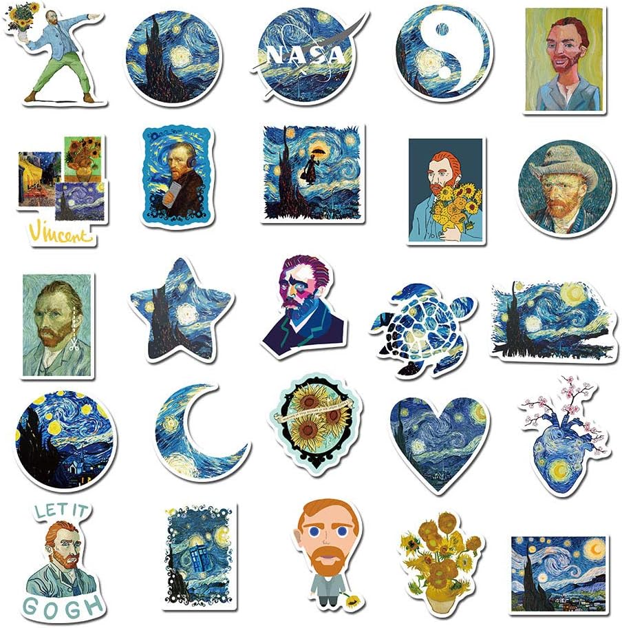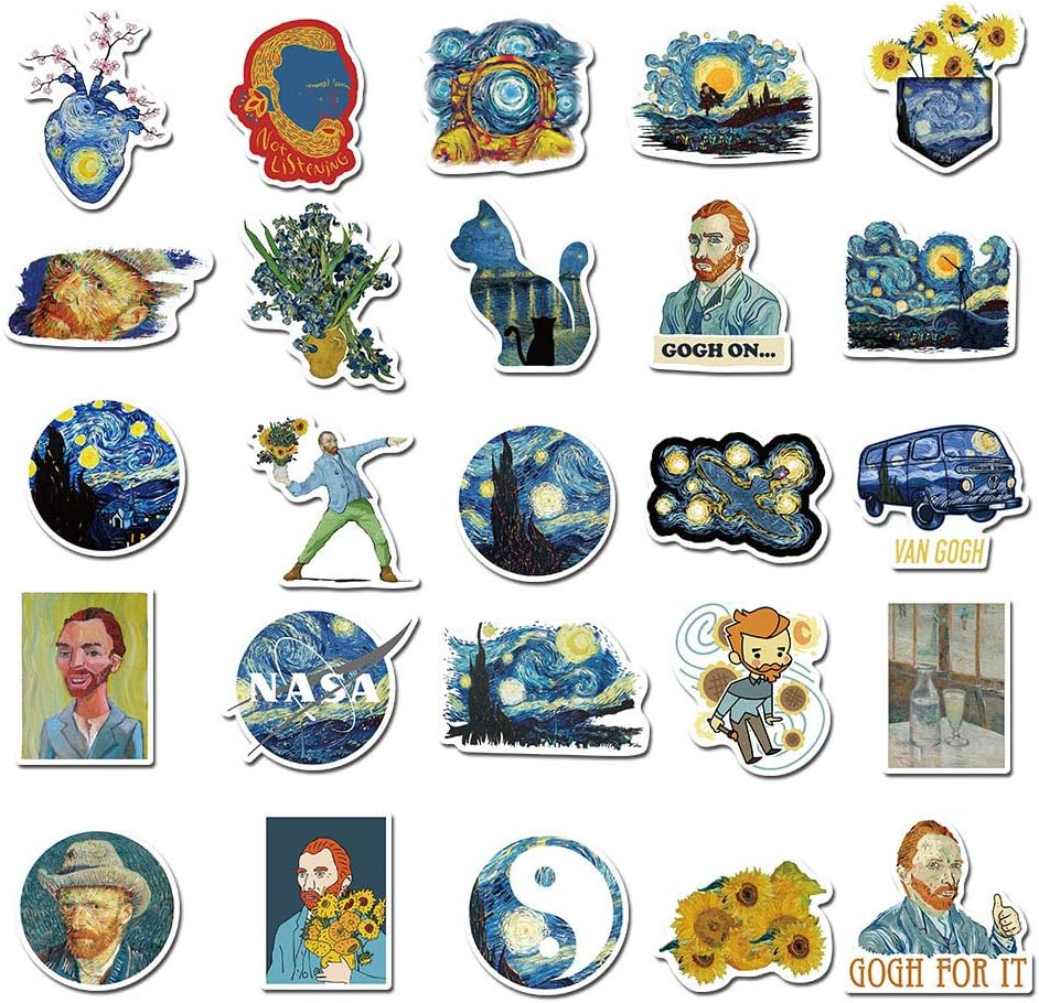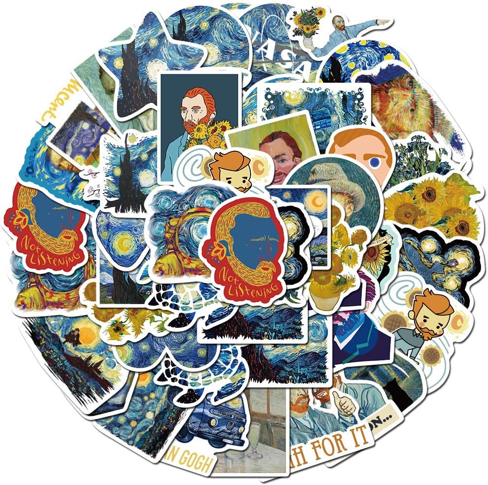 40 قطعة من ملصقات فان جوخ ذا ستاري نايت عباد الشمس الفنية المقاومة للماء لزجاجة المياه والكوب واللابتوب والدراجة ولوح التزلج وصندوق الامتعة من الفينيل، رقع جرافيتي بي ار جيه اتش اس ال