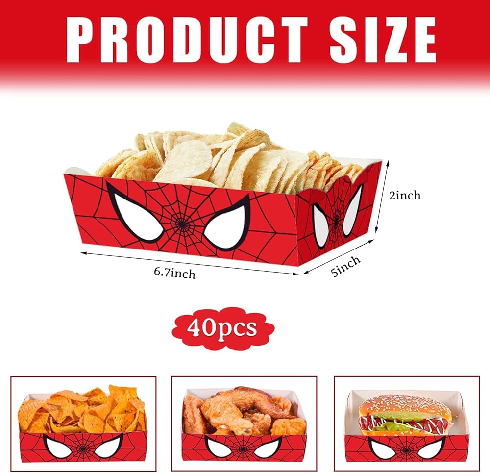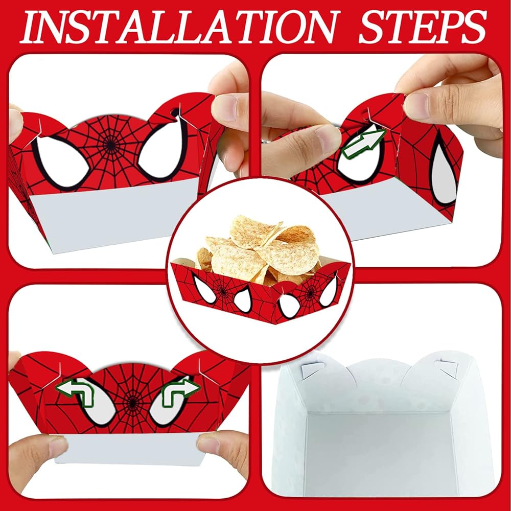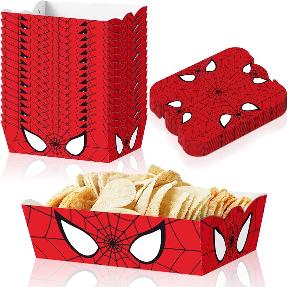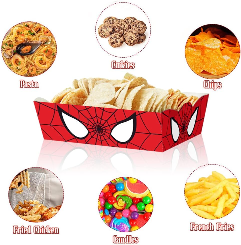 【الخامة】صواني طعام بتصميم عنكبوت للاستعمال مرة واحدة مصنوعة من ورق عالي الجودة، وتحتاج إلى تجميعها بنفسها، للاستعمال مرة واحدة، آمنة ومقاومة للدهون، لحمل الطعام بشكل مريح في الحفلات أو حفلة عيد الميلاد.