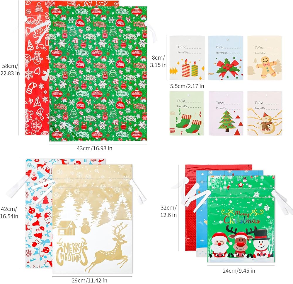 TheChristmas bags features 20pcs Christmas bags with tags. Durable Christmas Bags