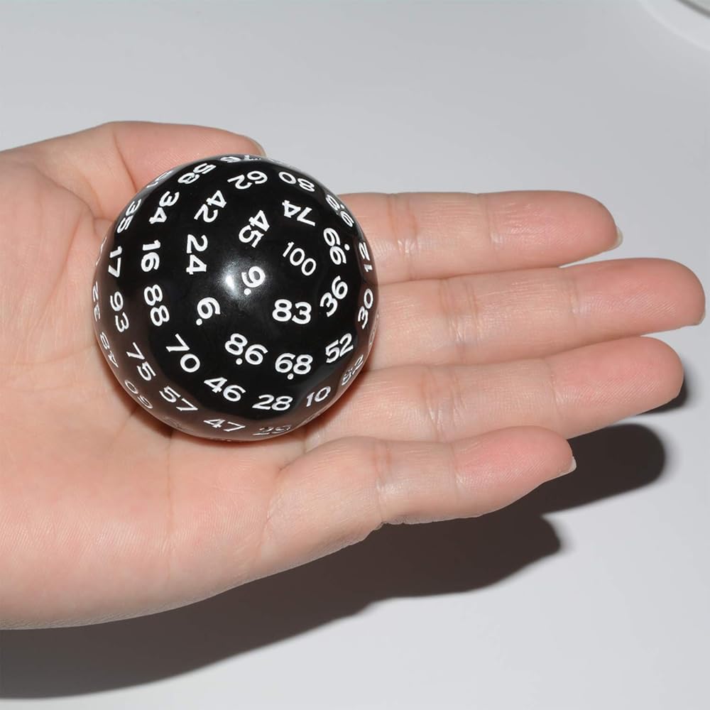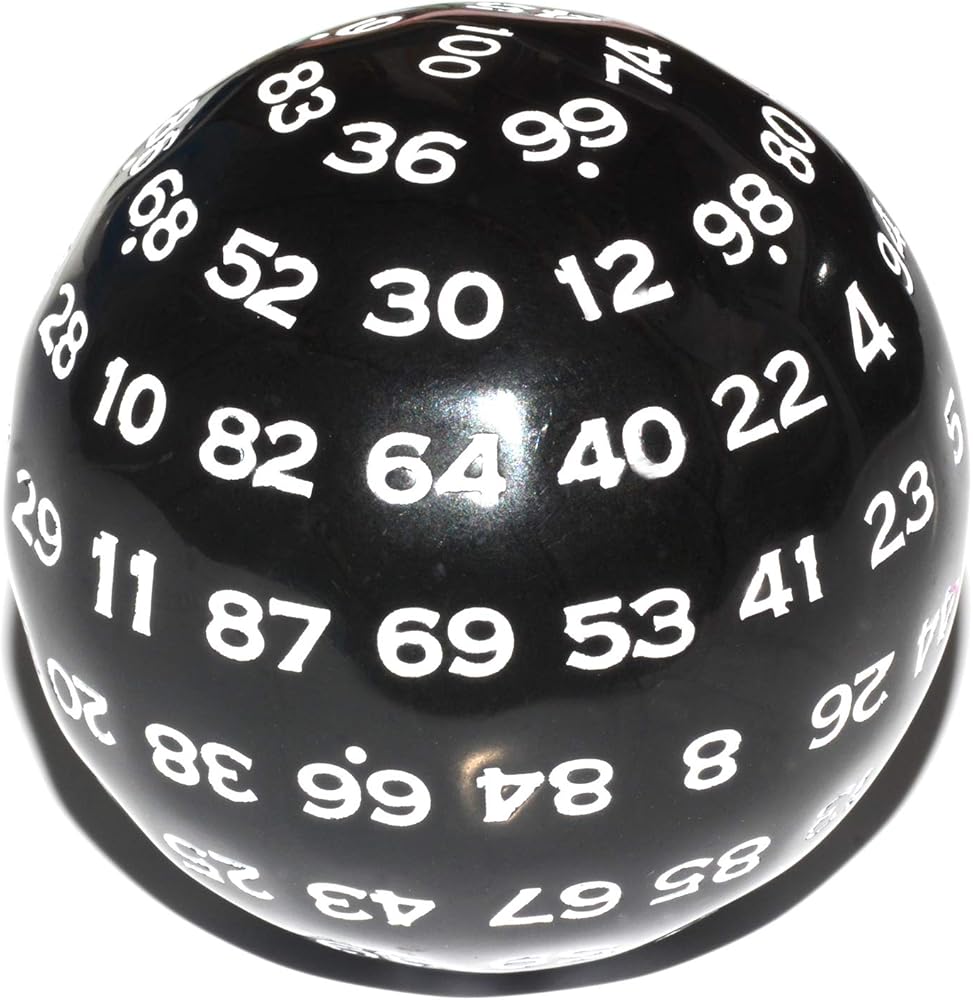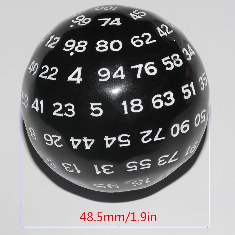 قالب 100 جانب، ارقام سوداء في ابيض، 100 مكعب جانبي، كل سطح هو نرد موحد D100 DND لنرد العاب الطاولة ار بي جي ام تي جي (48.5 ملم)