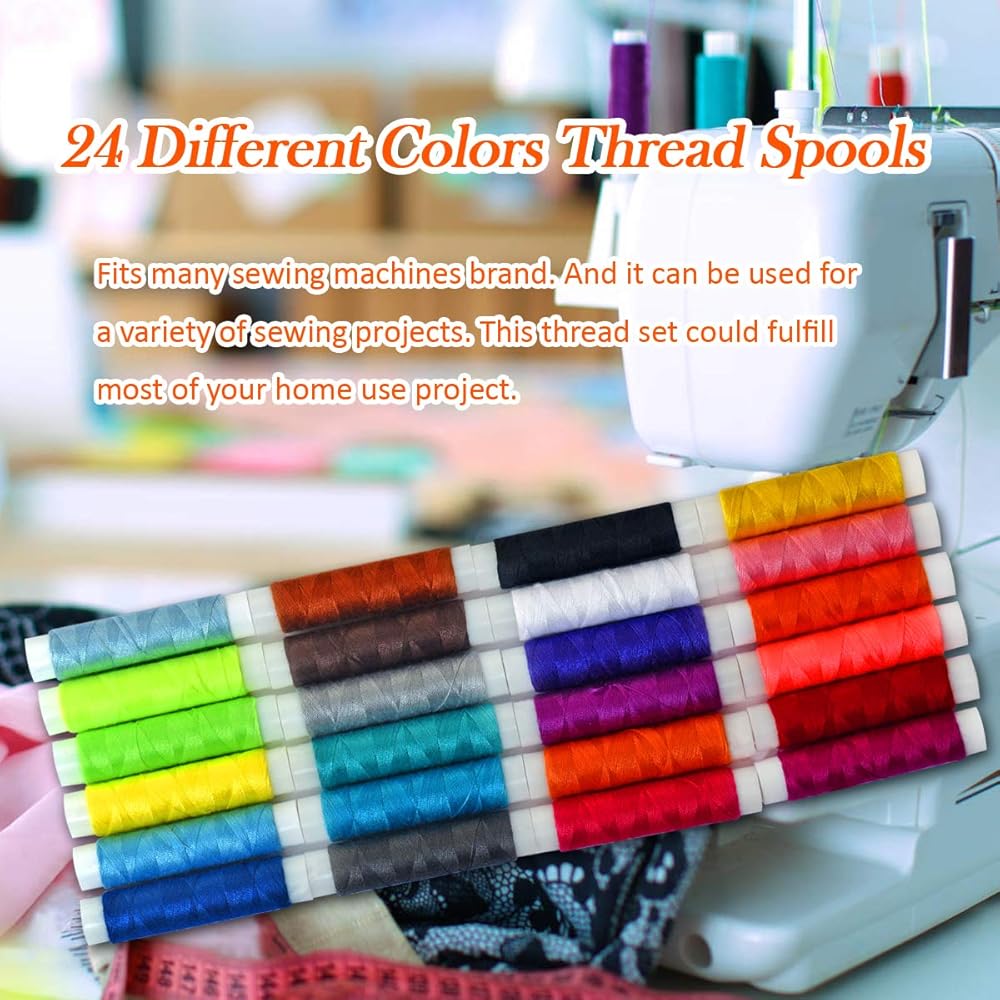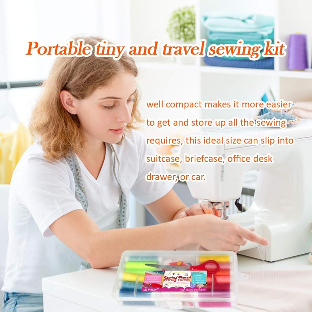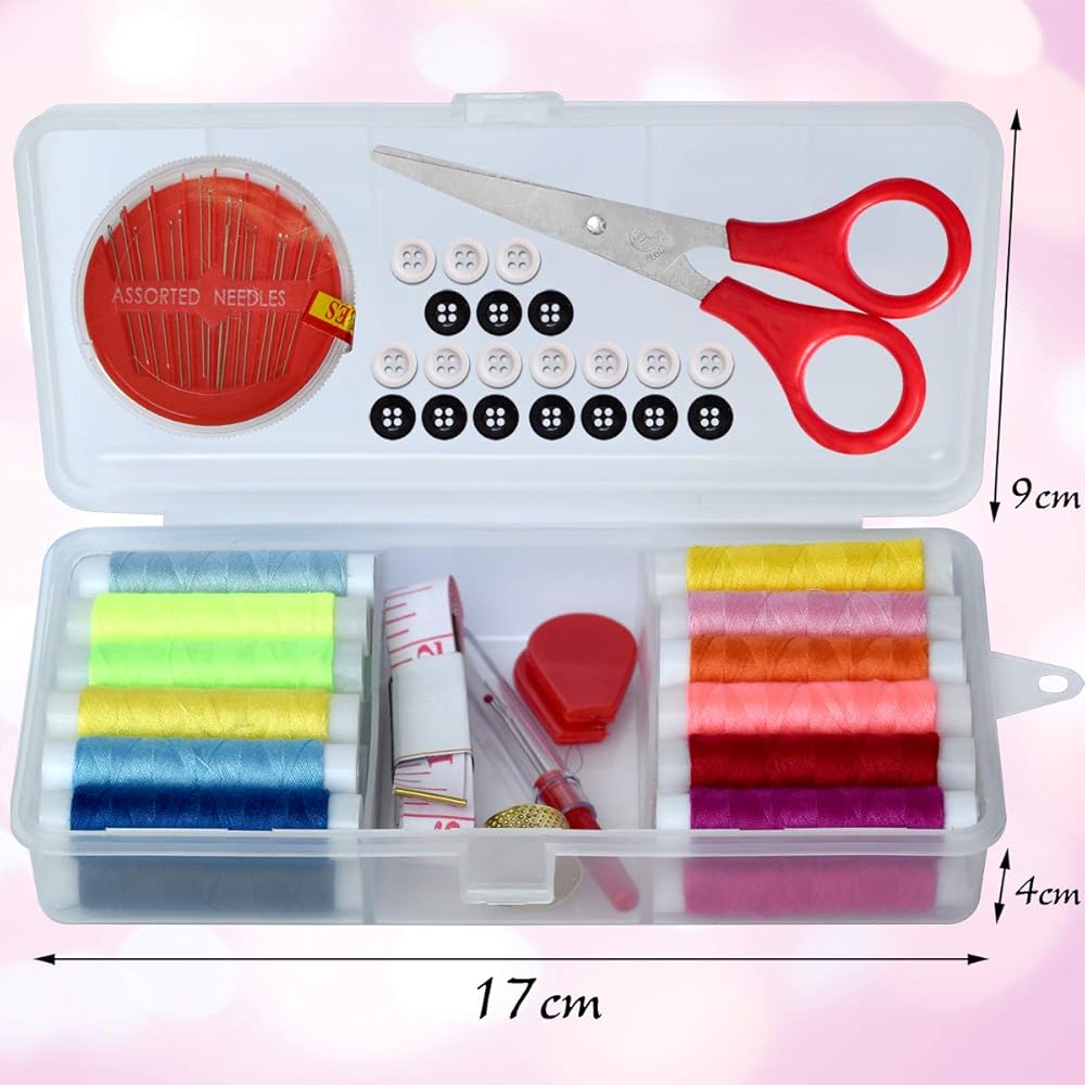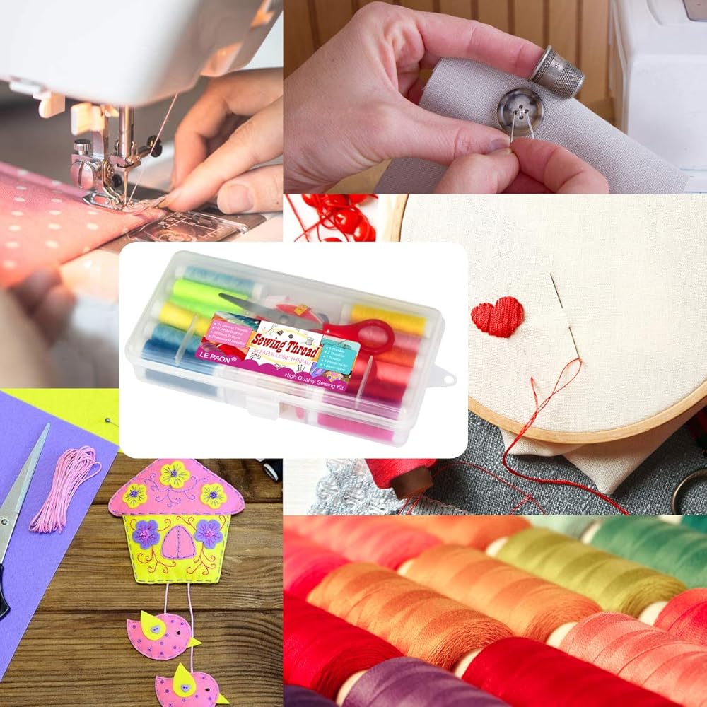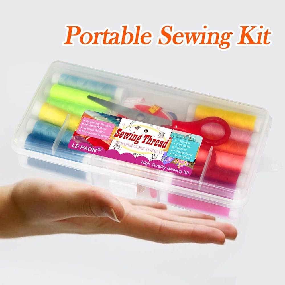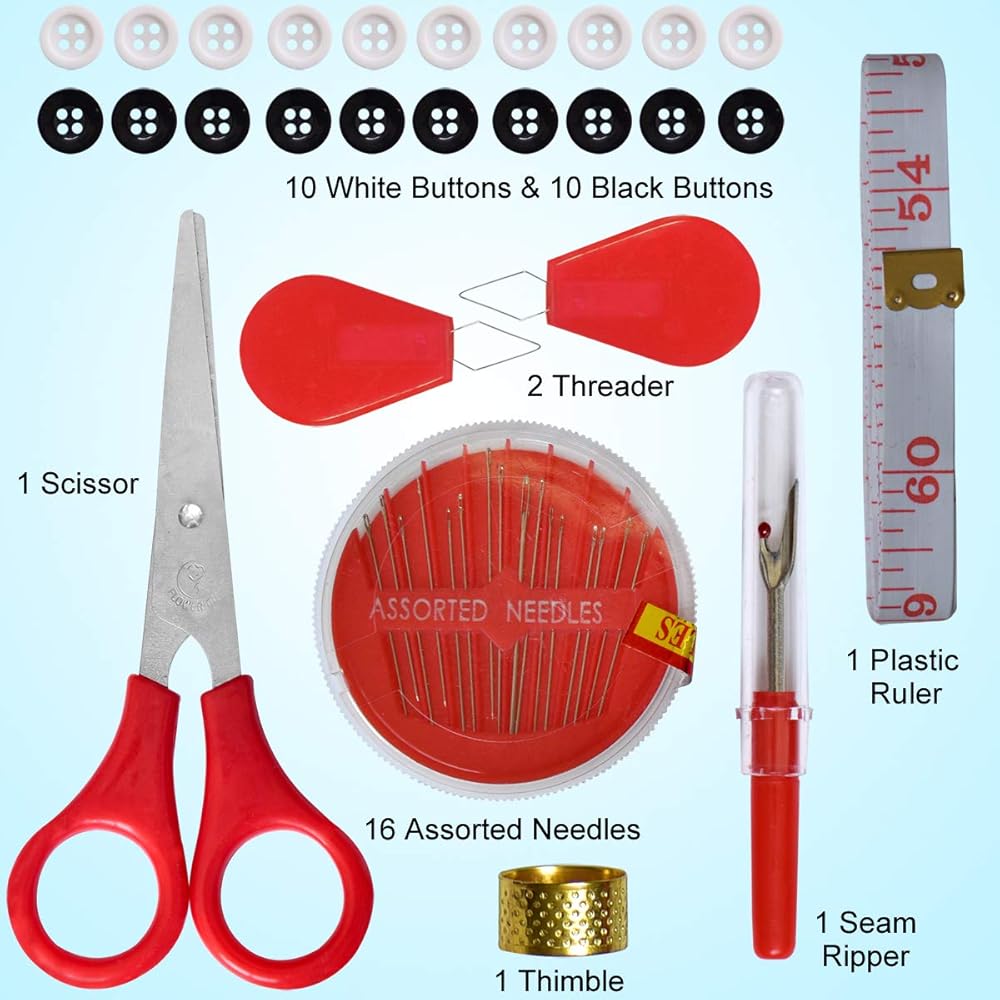 • [ملحقات خياطة كاملة] - 24 خيط ألوان مختلفة (أبيض، أسود، أحمر، أرجواني، أزرق، أخضر، رمادي، بيج، بني، كل لون بطول 21 ياردة)، 16 إبرة خياطة، 20 زر قميص، 1 كشتبان، مزيل الخيوط، 2 خيط إبرة، 1 مقص أحمر، 1 شريط قياس، صندوق بلاستيكي شفاف محمول، هذه الخياطة المريحة والكاملة يستخدم على نطاق واسع الملحقات ل تتطابق مع أي شيء تخيطه.