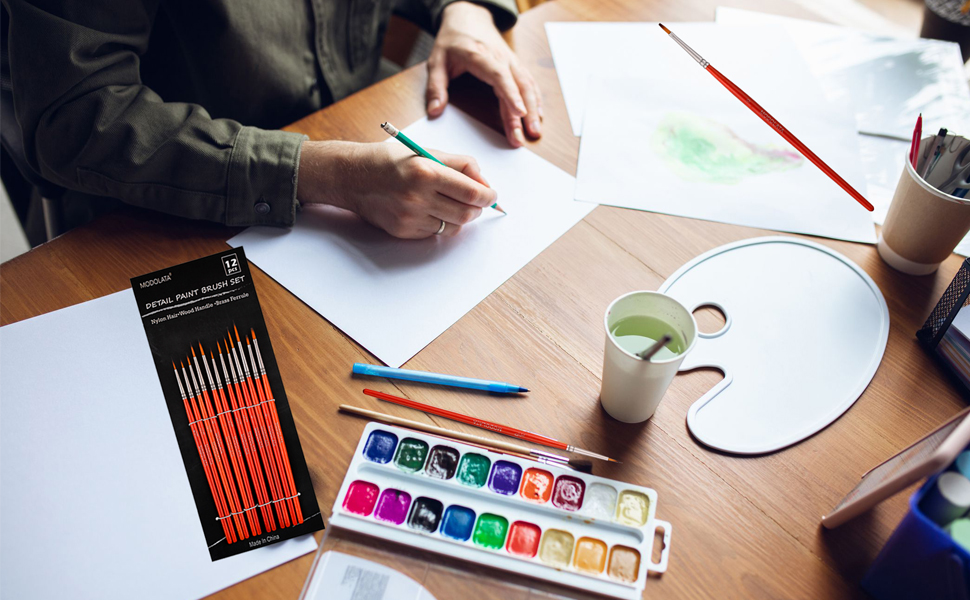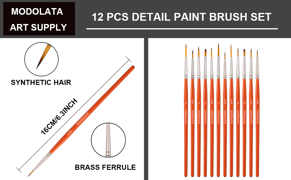 مثالية لجميع أنواع التفاصيل. جيدة لفن الأظافر ورسم الوجه، تعمل بشكل رائع لطلاء النماذج المقياس، وورهامر 40 كيه، وورش الألعاب، والرسم على الصخور، والحرف اليدوية، والطلاء بالأرقام للبالغين، وهي عملية لجميع أنواع وسائط الرسم مثل الطلاء العسكري أو الأكريليك أو الألوان المائية أو الغواش أو الزيت.