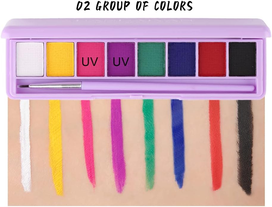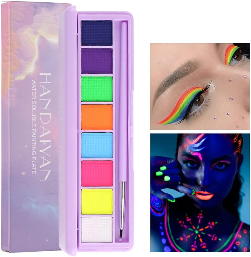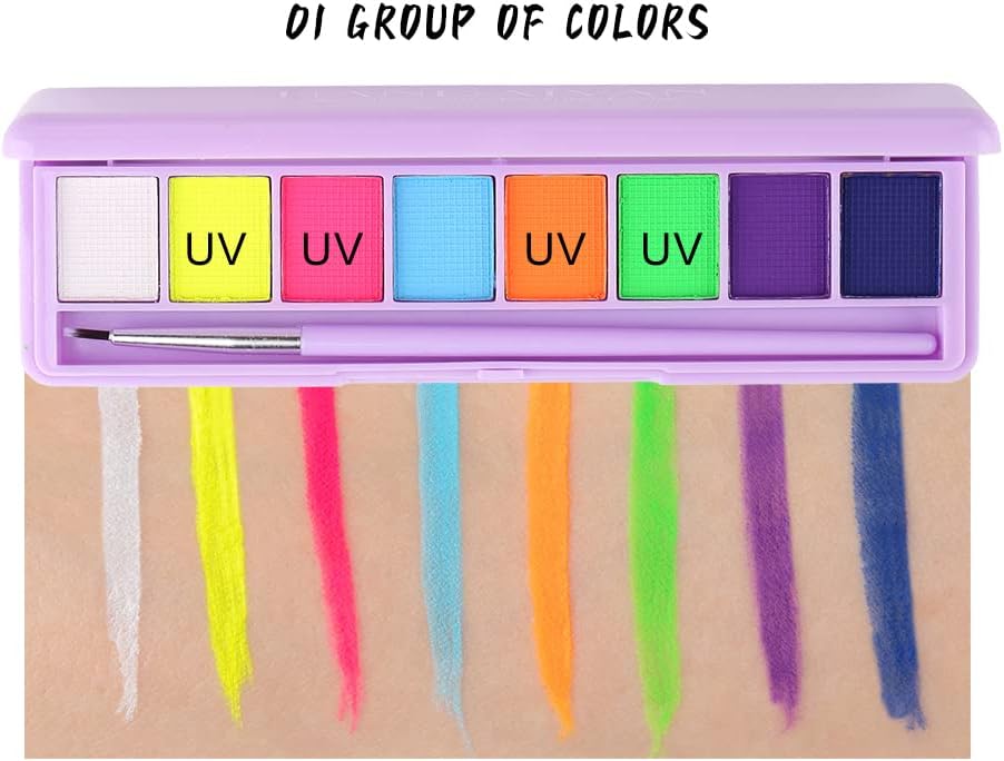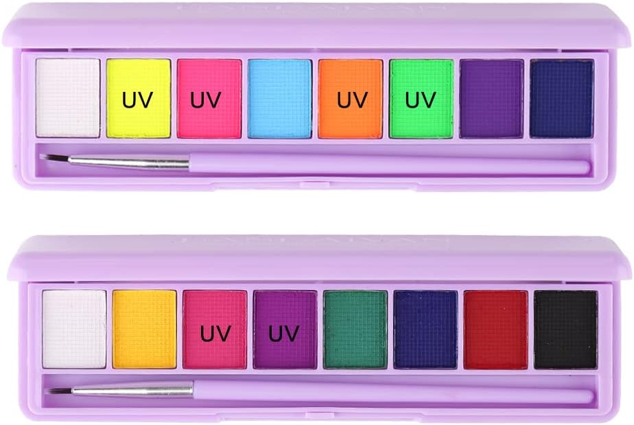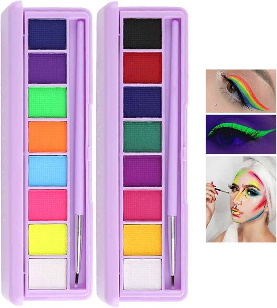 Mrettick Body Painting Palette 16 Colors Face Body Paint Non Toxic Professional Makeup Palette UV Glow Face&Body Paint for Party,Halloween,Theater,Cosplay