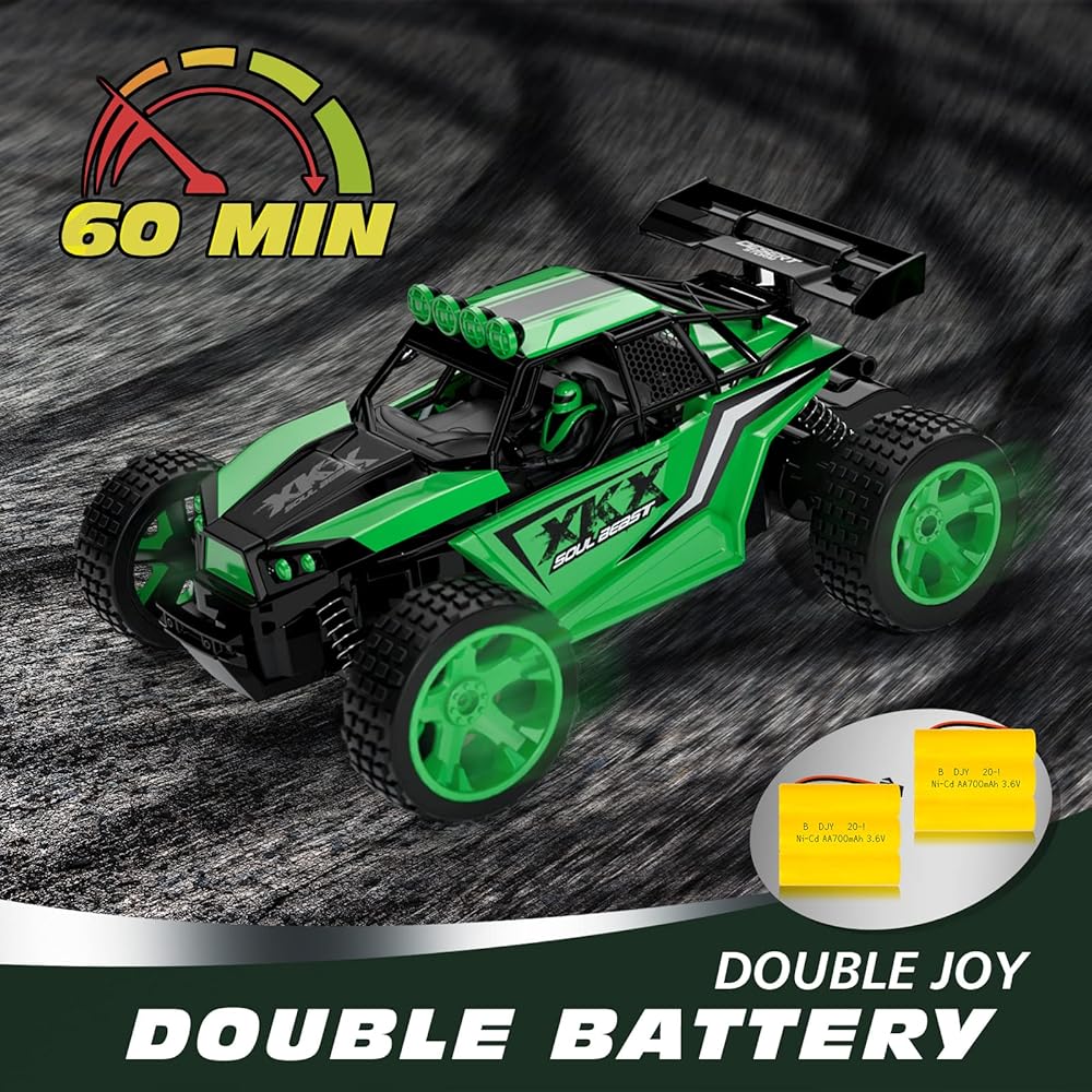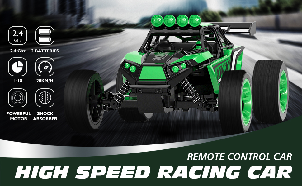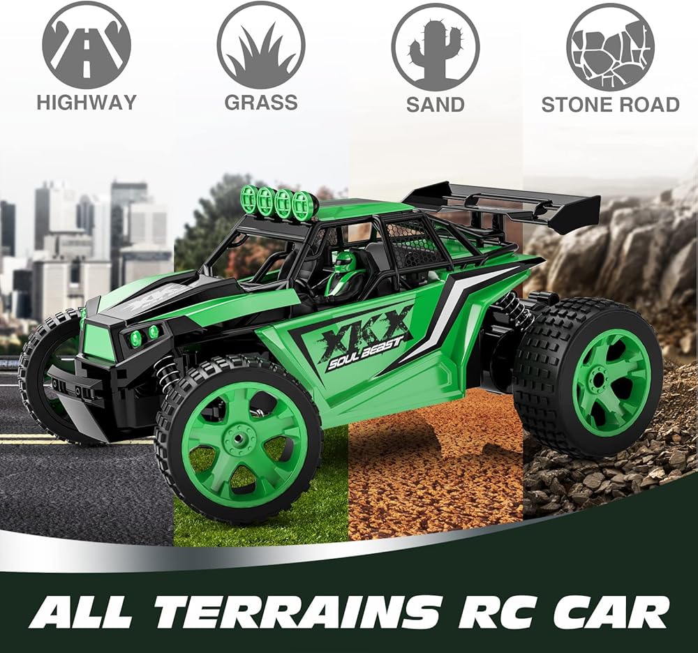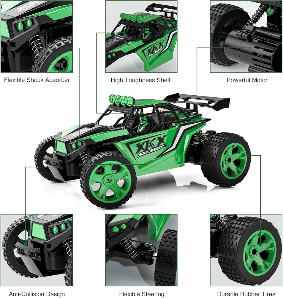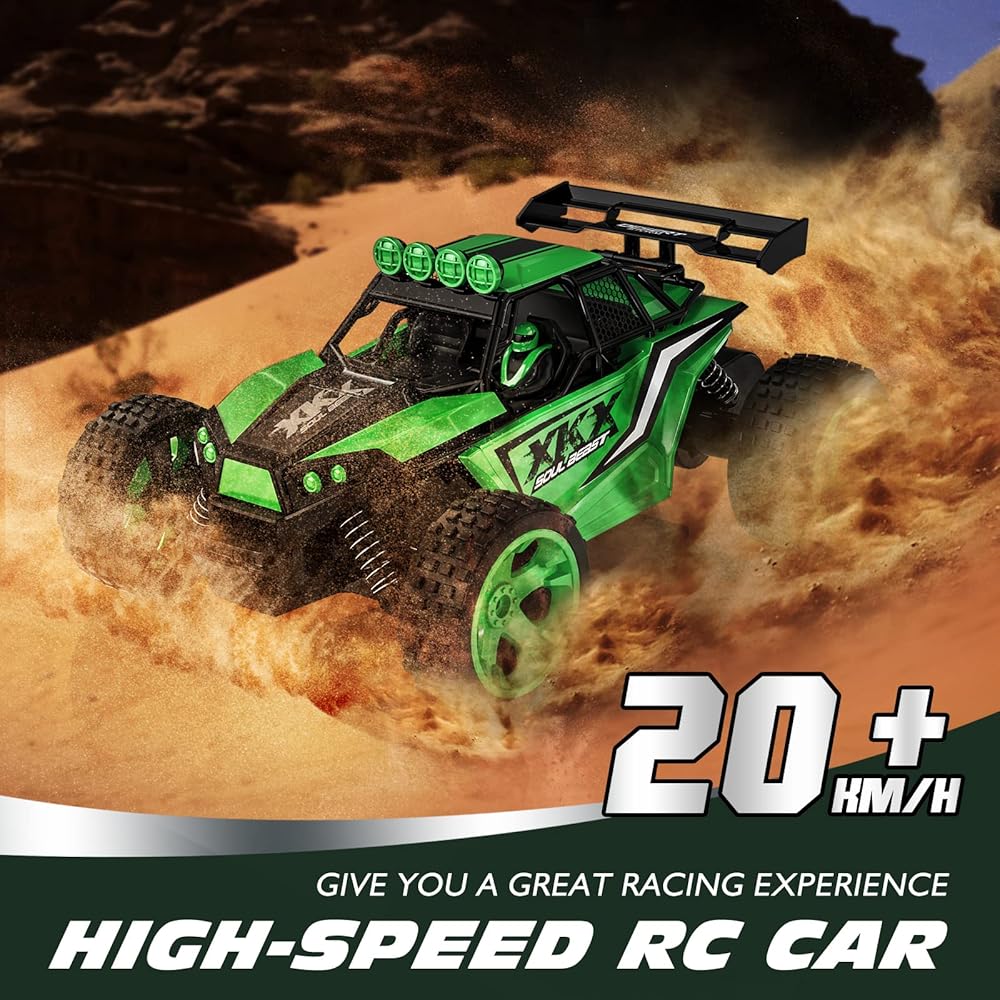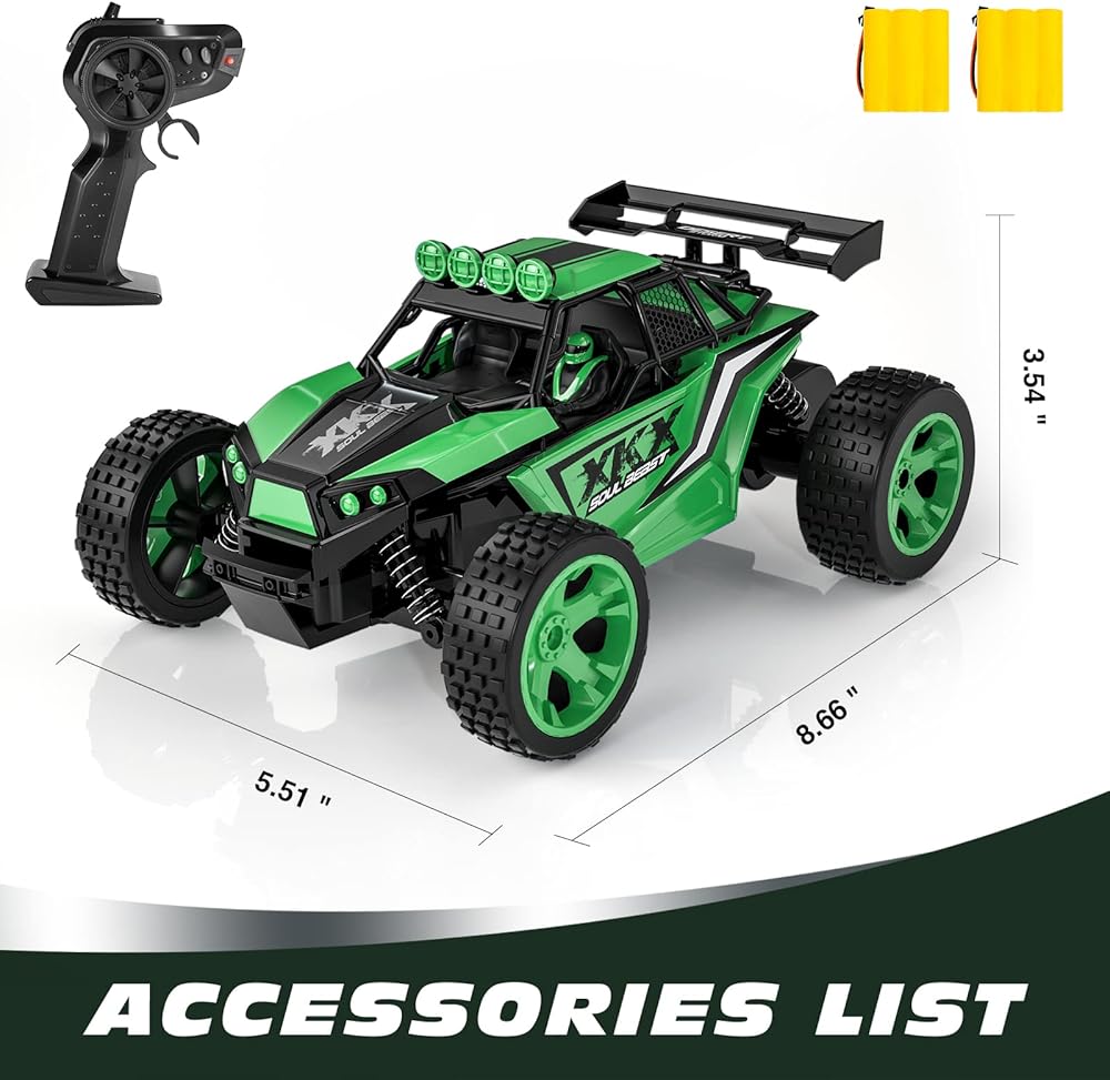 سيارة تيكنوك RC للأطفال، 2.4 جيجا هرتز 20 كم/ساعة عالية السرعة مع جهاز تحكم عن بعد، 1:18 2WD سيارة سباق للطرق الوعرة مع بطاريتين قابلتين للشحن لمدة 60 دقيقة من اللعب، هدية رائعة للأولاد والبنات (أخضر)