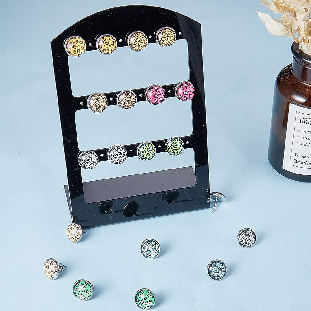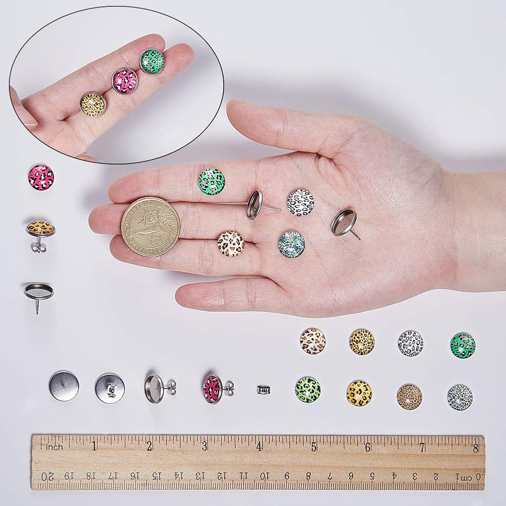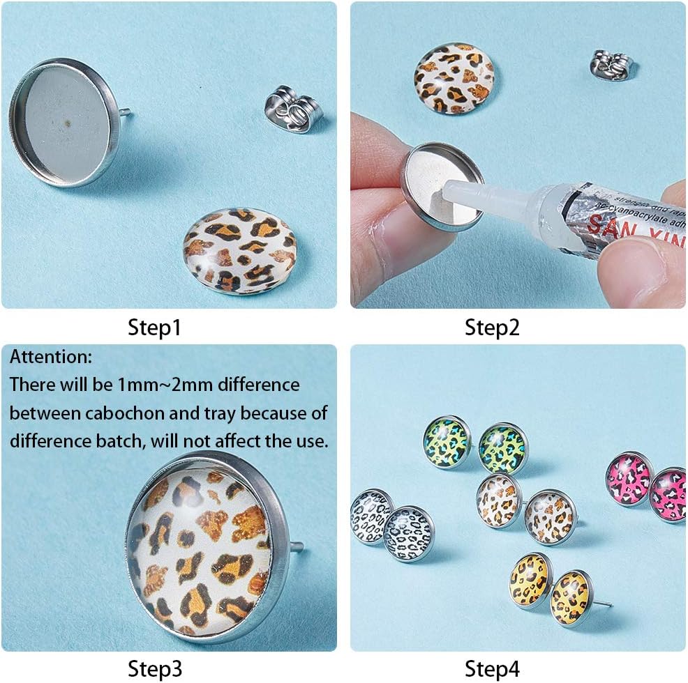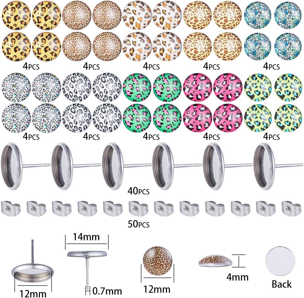 SUNNYCLUE 1 Box 130Pcs DIY 20 Pairs Leopard Stud Earrings Making Starter Kit 4 Color 12mm Flat Back Druzy Resin Cabochons & Blank Stud Bezel Earring Settings Post & Earnuts for Earring Jewelry Making Supplies