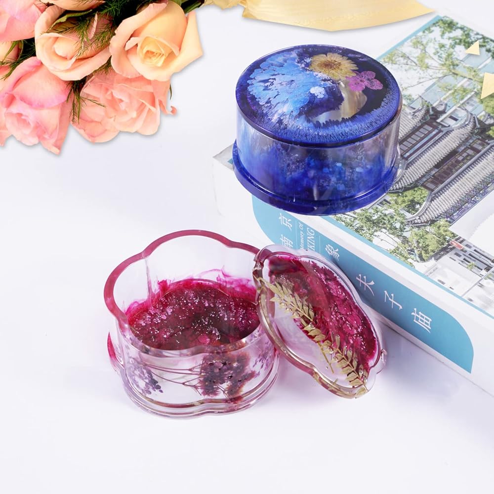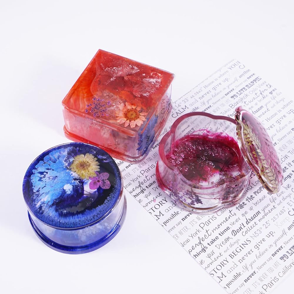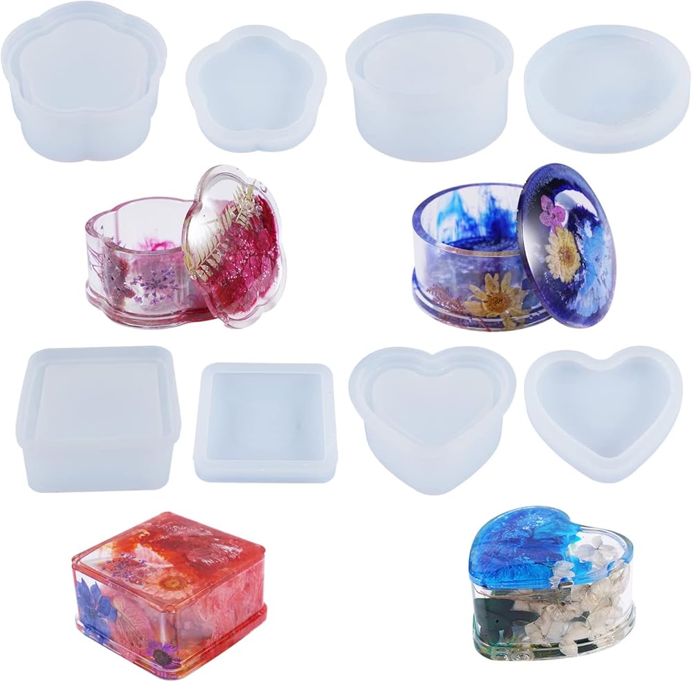 صندوق مجوهرات من لوكسوين 4 قطع/مجموعة قوالب الراتنج مع غطاء، علبة حاوية مجوهرات الراتنج مع قالب صندوق تخزين دائري / مربع / قلب/زهرة للحرف الراتنجية، تخزين الأقراط، القلادات، الخواتم، الأساور