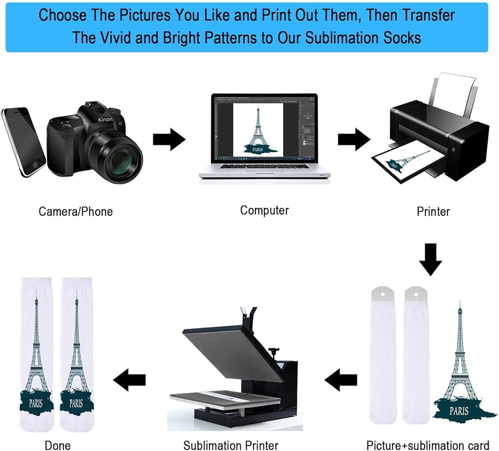 استمتع بالمرح بنفسك: هذه الجوارب العملية بيضاء وفارغة، مما يوفر لك الكثير من المساحة الإبداعية، يمكنك اختيار صورتك المفضلة أو طباعة النصوص؛ يمكن لهذه الجوارب التصعيد صبغ المعدن أن تمتد الجوارب، مما يضمن أن النمط الذي تريد طباعته سوف يغطي الجورب، مما يسمح بملء الجوارب بشخصيتك وأناقتك