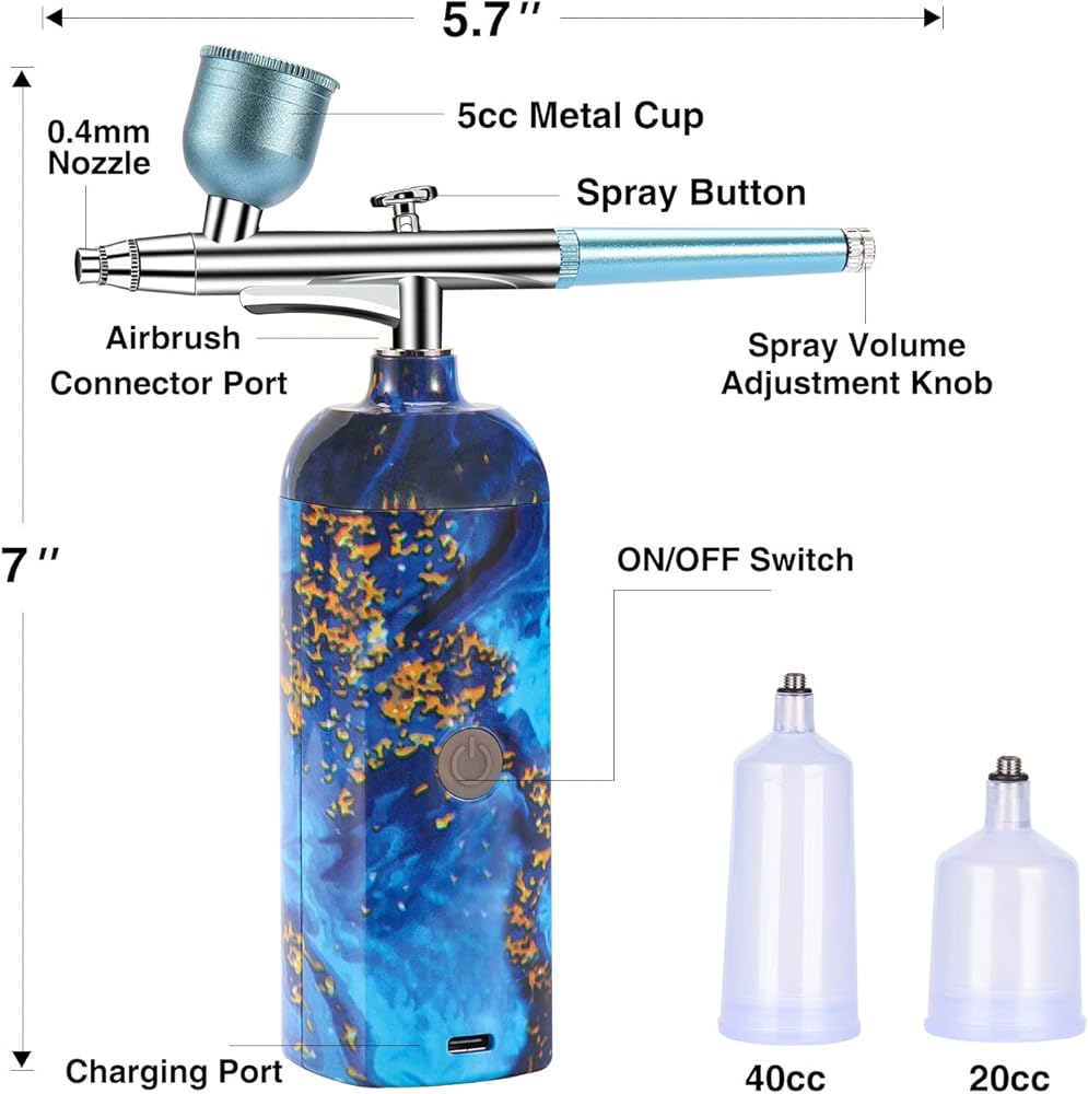 لاسلكي وقابل للحمل: حجم صغير وخفيف الوزن. يمكنك أخذه إلى الخارج بسهولة لاستخدامها في متعدد الأغراض. إنه مصمم لمجال طلاء البخاخة: المكياج، والوشم، وفن الأظافر، وطلاء الوجه، وطلاء النموذج، وديكور الكعك، وما إلى ذلك.