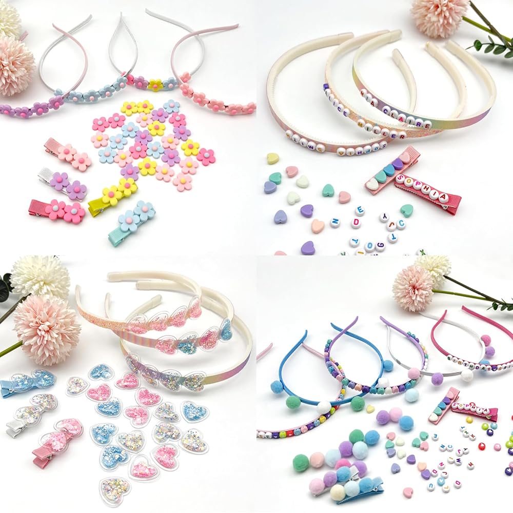 424 قطعة من عصابات الرأس DIY للفتيات من سن 5 إلى 12 عامًا من EMUFOOK - اصنعي إكسسوارات الشعر الأنيقة الخاصة بك - الفنون والحرف اليدوية للأطفال من سن 5 6 7 8 9 هدايا عيد ميلاد للفتيات من عمر 8 إلى 12 عامًا
