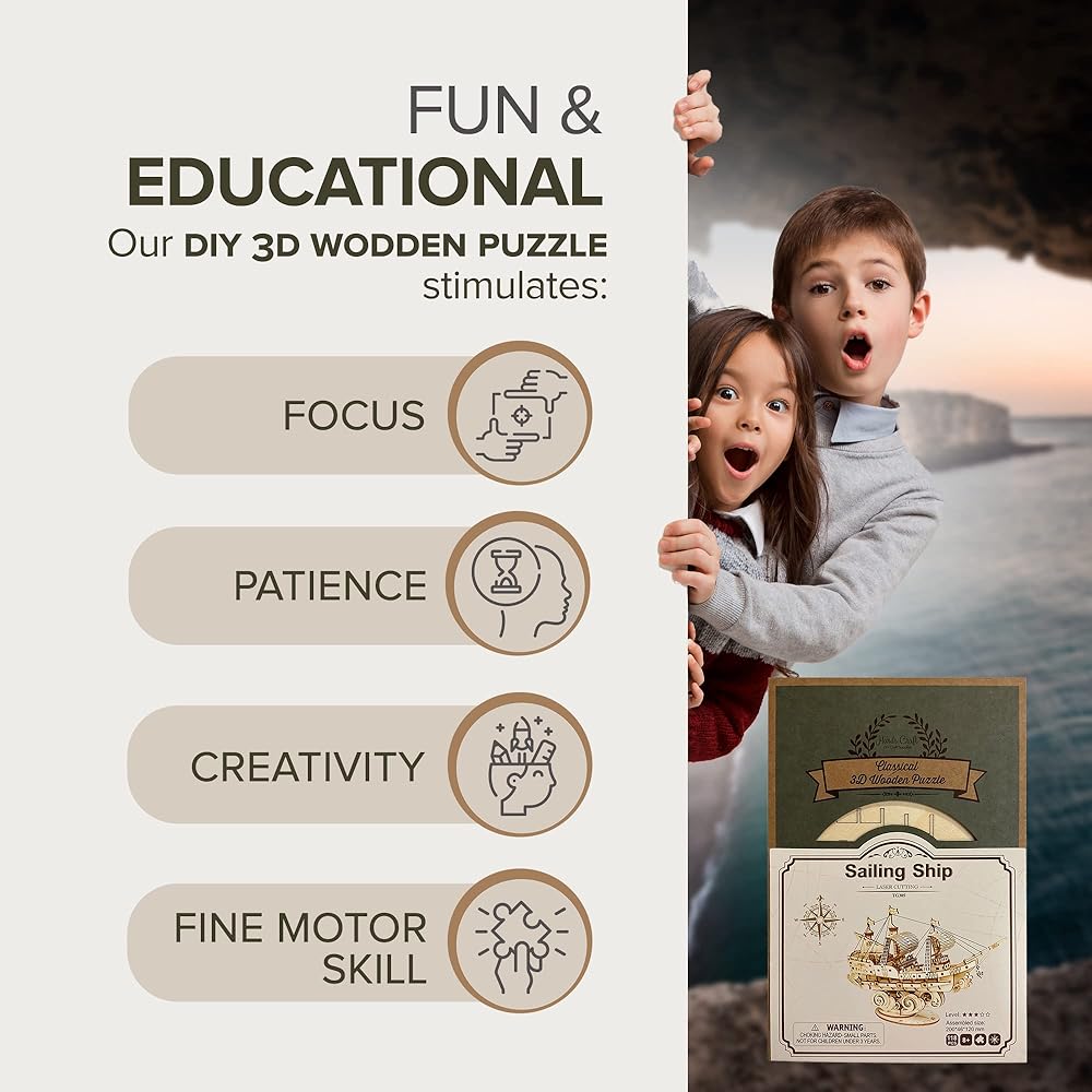 😊 مجموعة ألغاز خشبية ثلاثية الأبعاد - هل أنت مستعد لإبهار أصدقائك وعائلتك بهذه المتعة لبناء سفينة شراعية خشبية ثلاثية الأبعاد؟ يبدو تماما مثل الصورة عند تجميعها! اختر تصميمات السفينة المفضلة لديك أو اجمعها كلها! هذه الألغاز المقطوعة بالليزر مصنوعة يدويًا، لذا يستطيع طفلك تجميعها معًا كنشاط هواية ممتع ومحفز عقليًا ويمكن عرضها كديكور للمنزل. يعد هذا النشاط الهادئ الذي يمكنك القيام به بنفسك رائعًا للأولاد والبنات، بما في ذلك البالغين، وهو مثالي لجميع أفراد العائلة.