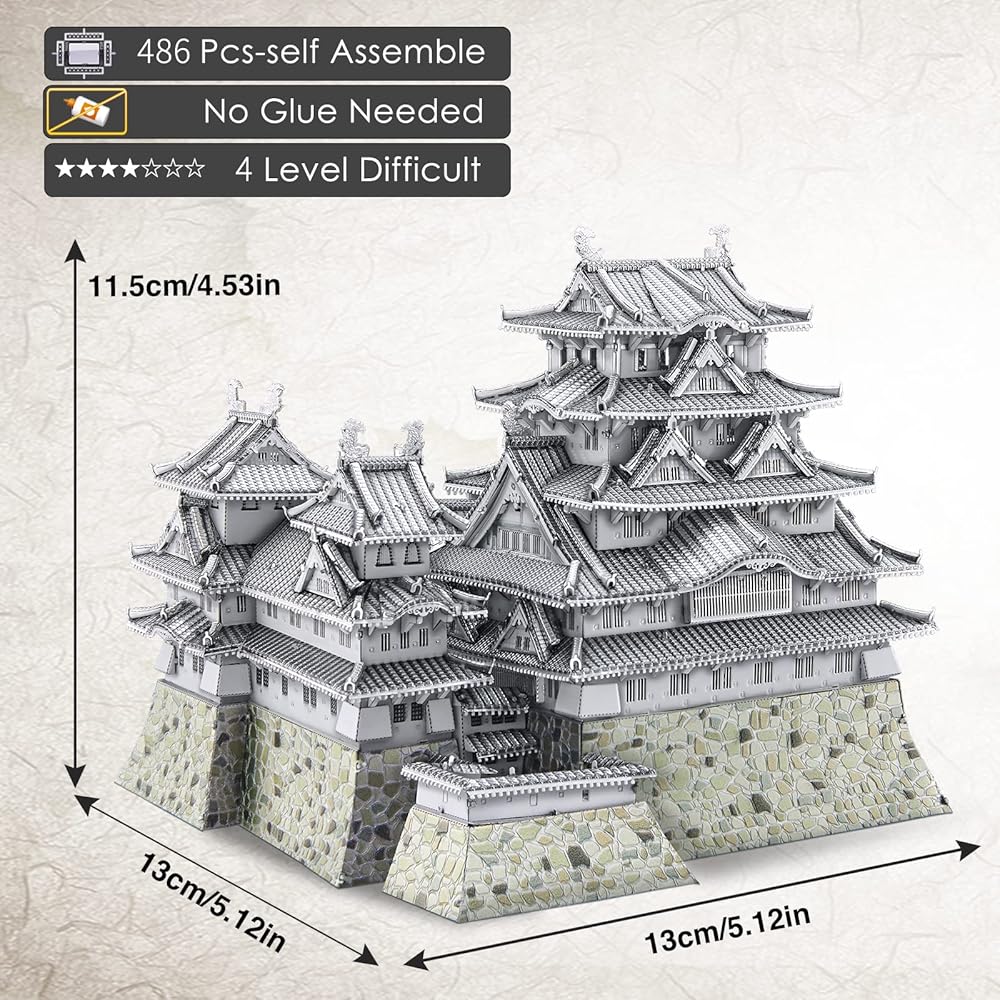 بيس كول احجية معدنية ثلاثية الابعاد للبالغين، قلعة هيميجي - مجموعة بناء نموذج ثلاثي الابعاد للهندسة المعمارية اليابانية لتزيين المنزل واعياد الميلاد