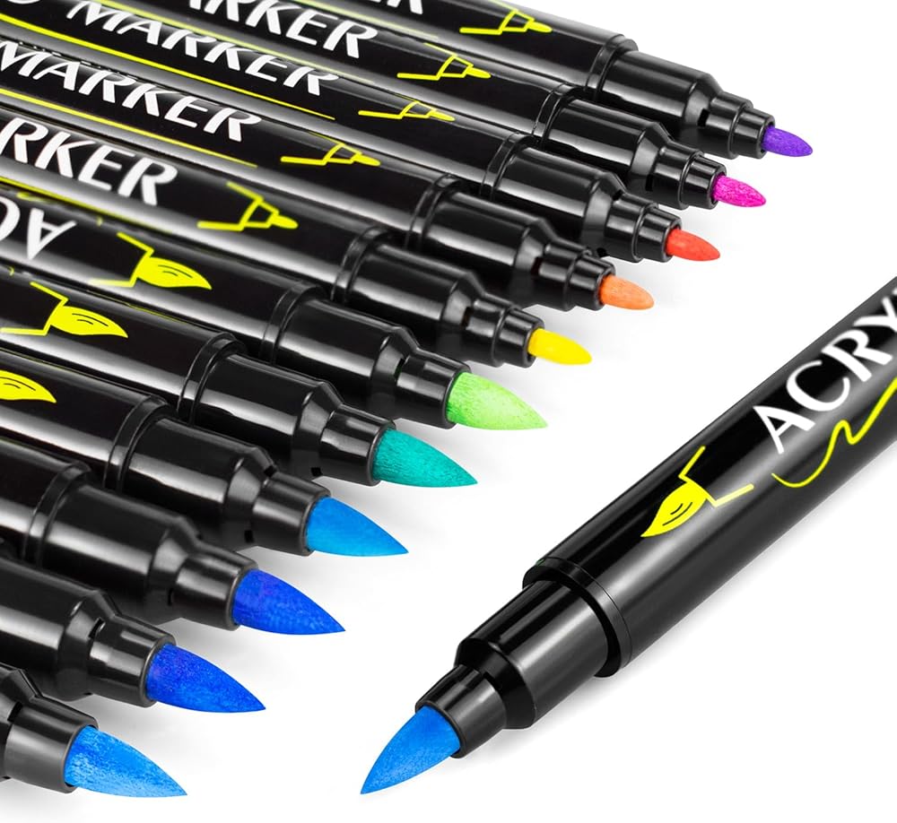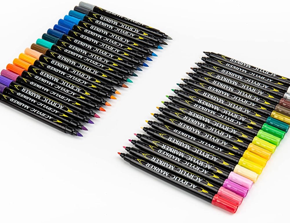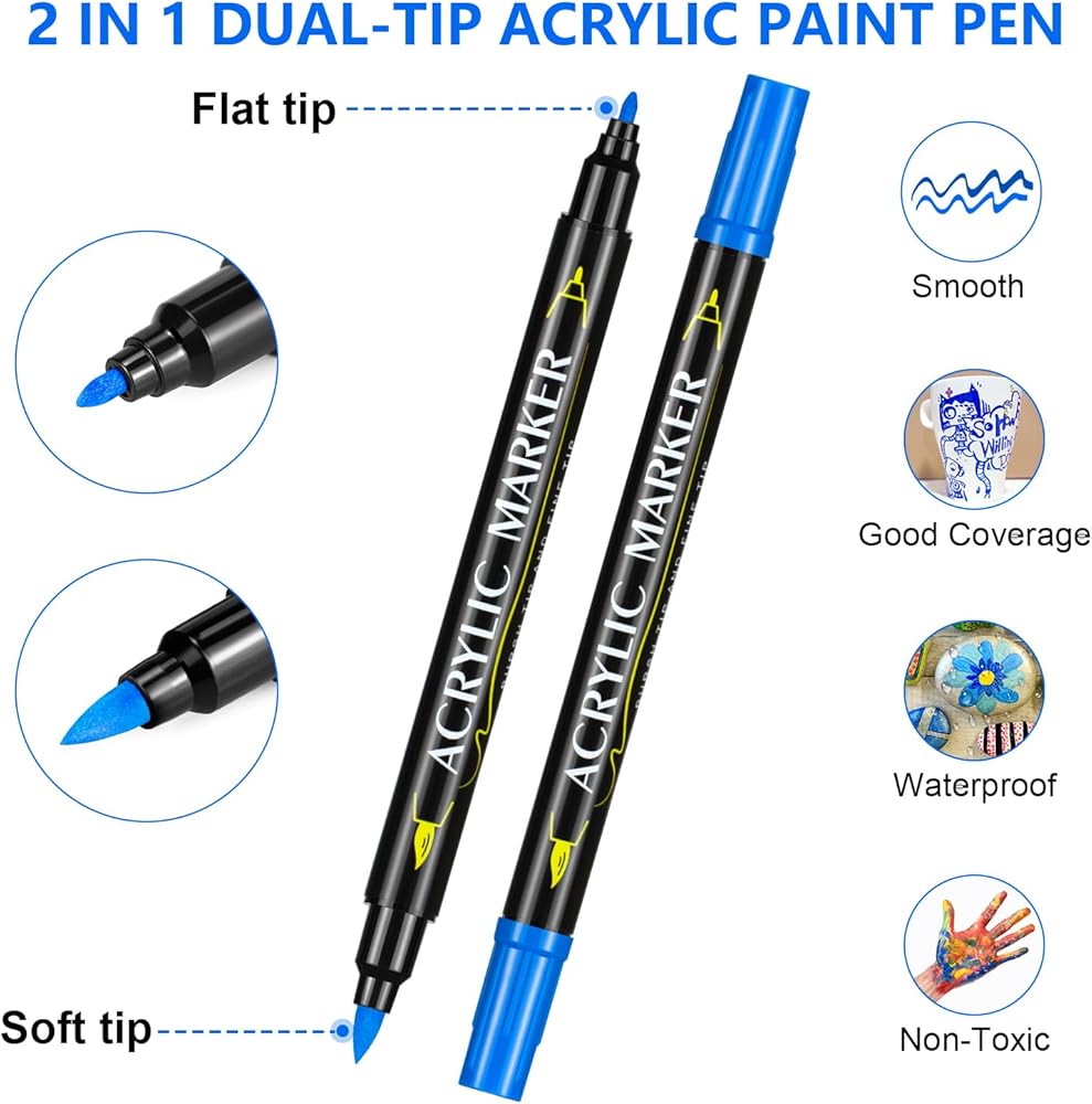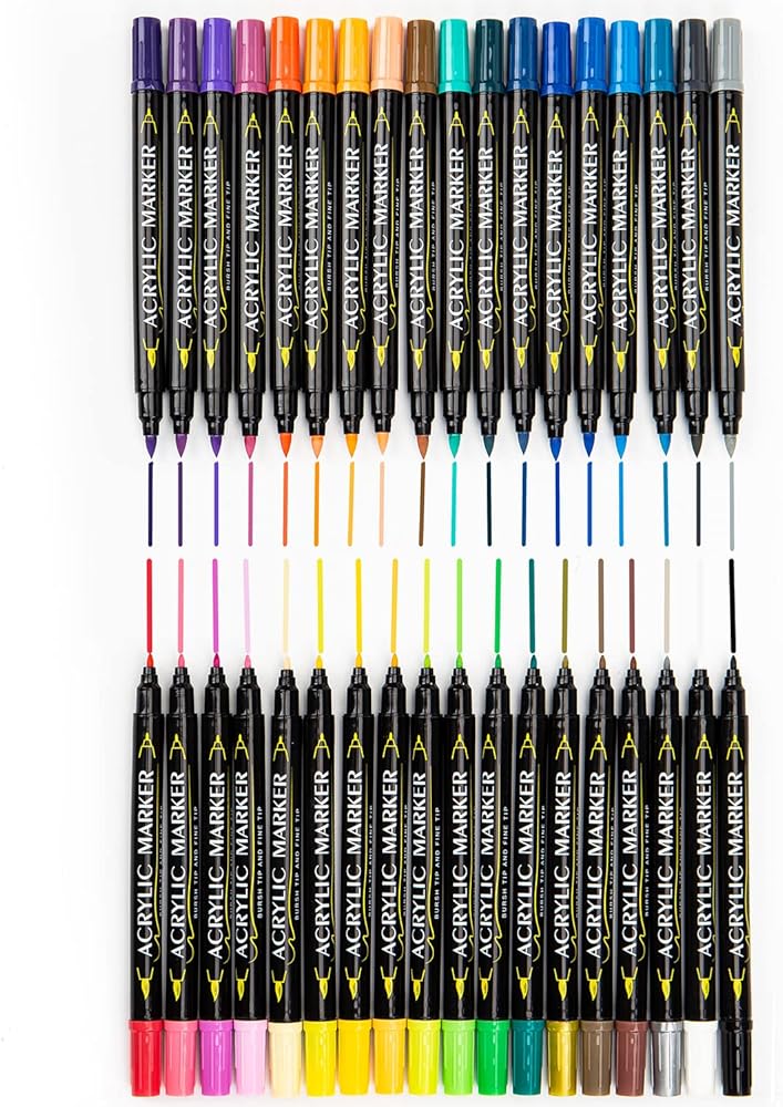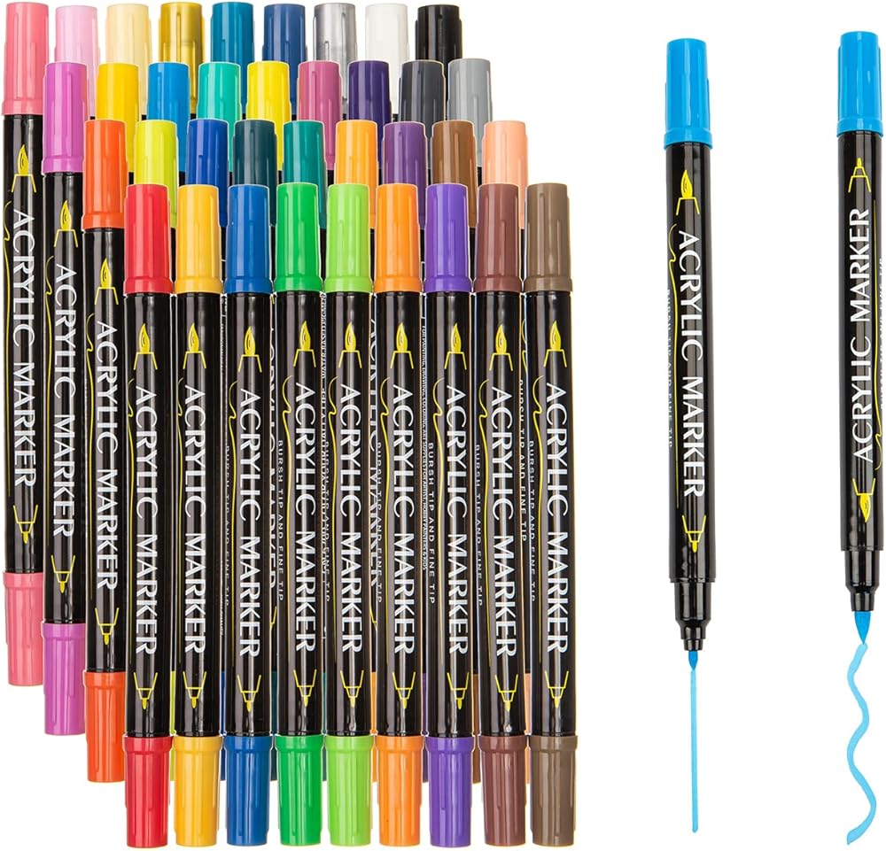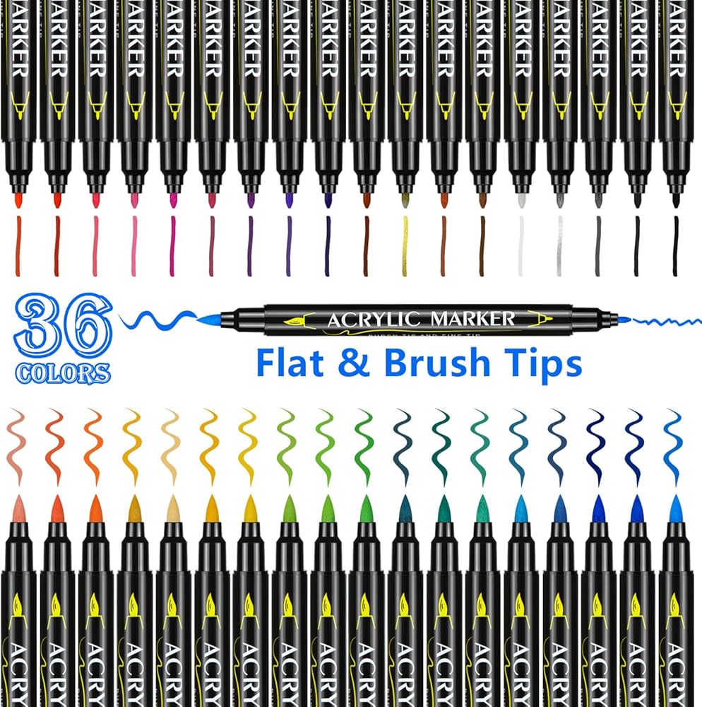 CeleMoon 36 Colors Dual Tip Fine & Brush Acrylic Paint Pens Markers Sets, for Wood, Canvas, Stone, Rock Painting, Glass, Ceramic Surfaces, DIY Crafts Making Art Supplies