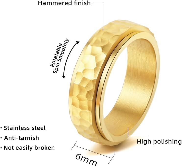 حلقة وظيفية مضادة للتوتر: يشعر الناس بالتوتر بسبب المزاج السيئ في بعض الأحيان. يمكن أن تساعدك حلقة القلق على الشعور بالهدوء والاسترخاء عن طريق تدويرها. إنها حلقة عملية كمجوهرات لمختلف الملابس وخاتم مضاد للقلق.
