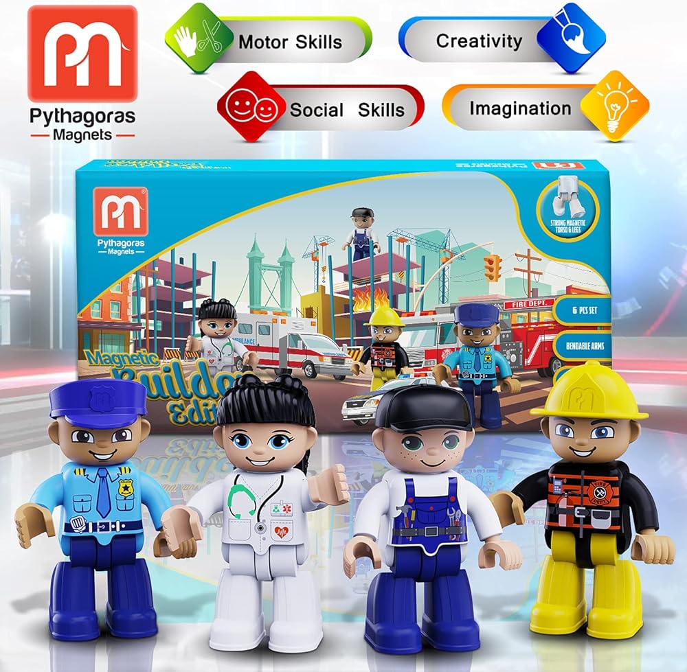 مجموعة ألعاب مغناطيسية من فايتاجوراس - ألعاب مغناطيسية للأطفال، شخصيات مساعدي المجتمع - شخصيات مغناطيسية للأطفال - شخصيات صغيرة من الأشخاص المغناطيسيين - مجموعة ألعاب مغناطيسية مكونة من 6 قطع
