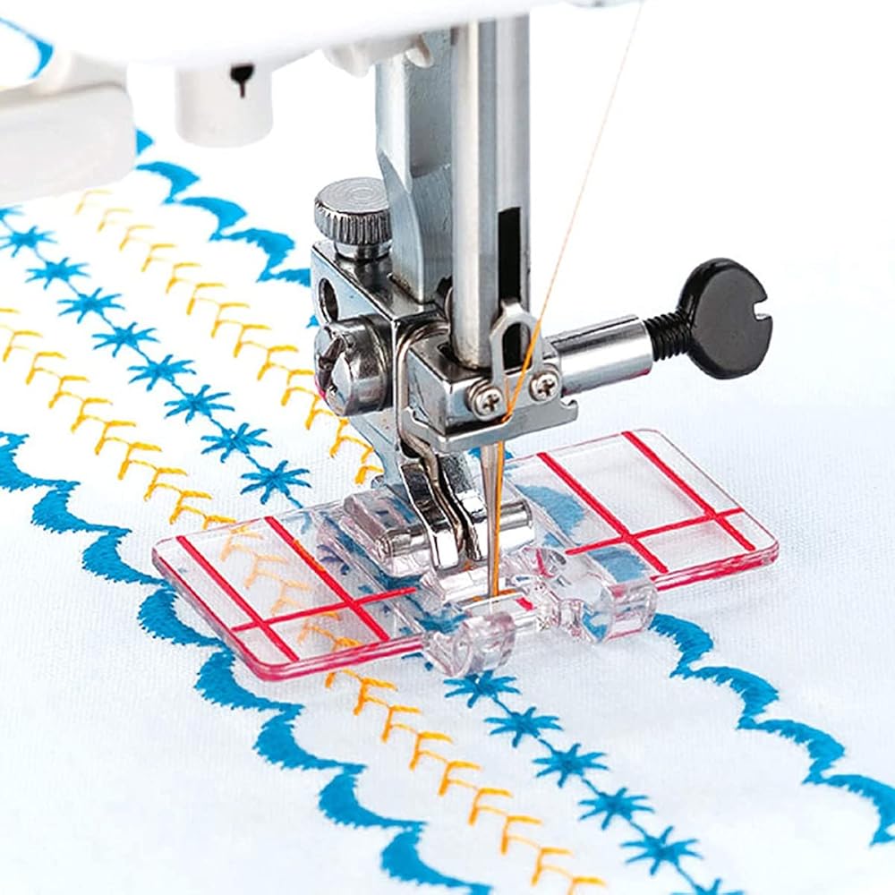 -- قدم آلة الخياطة دليل الحدود التي ستعطيك المسافة المثالية بين الغرز المزخرفة في كل مرة.
