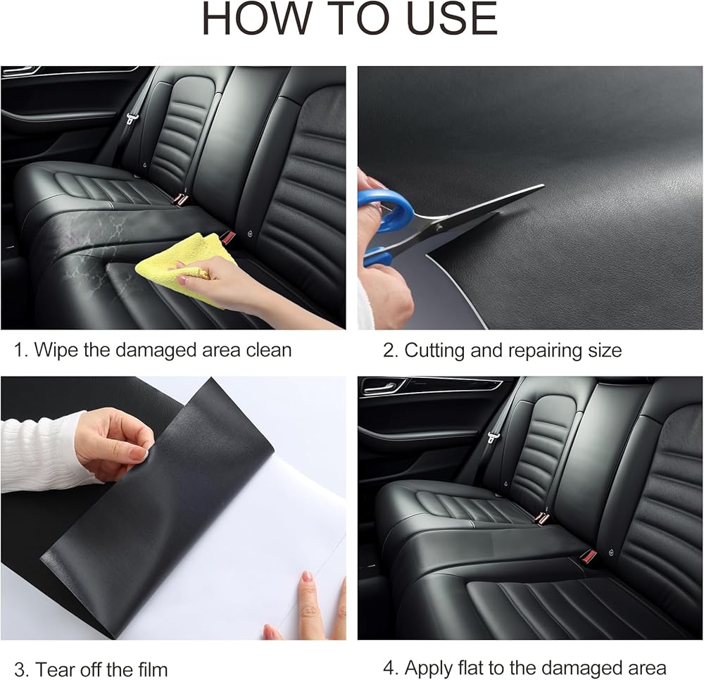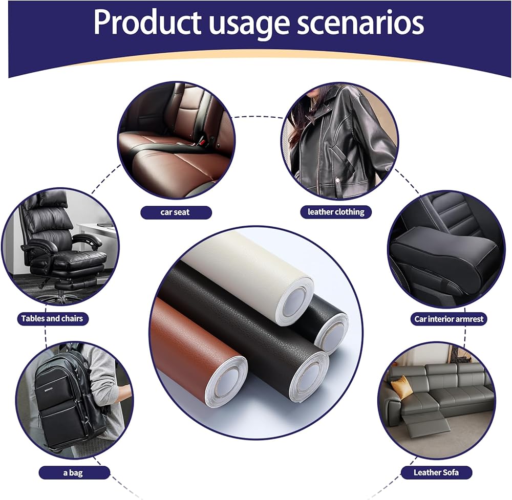 【سهلة الاستخدام】: رقعة إصلاح الجلد تأتي مع غراء وسهلة الاستخدام. كل ما عليك فعله هو تنظيف منطقة الإصلاح لإبقائها جافة، وقصها بحجم مناسب، وتقشير الورقة الخلفية، ولصقها على المنطقة التالفة لجعل سطحها يبدو جديدًا!