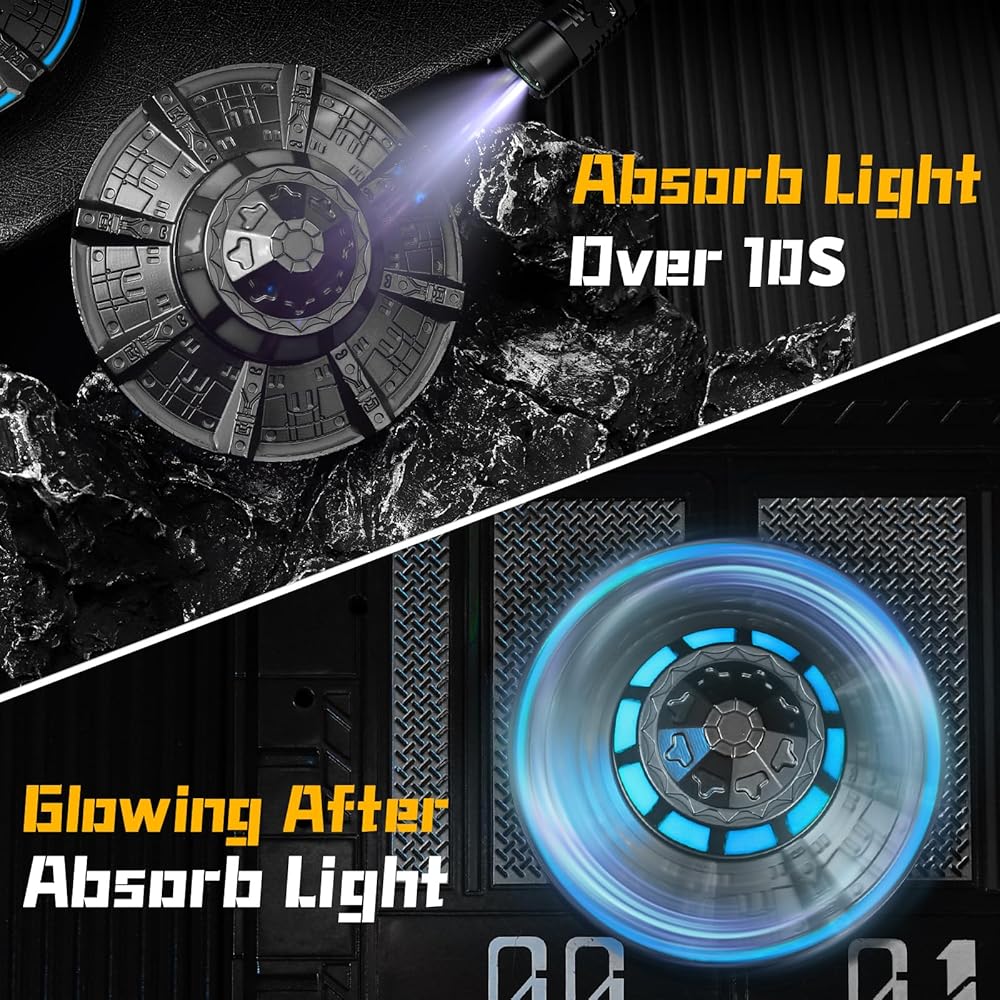 أداء مضيء فريد من نوعه: استخدم تأثير ضوء الهاتف المحمول، أو الشعلة المتضمنة لدينا للتألق على الجزء الدوار لمدة 30 ثانية، ويمكن أن ينبعث منها ضوء بارد في الظلام. سيتم ضرب الجميع بها ميزة مضيئة مجيدة.