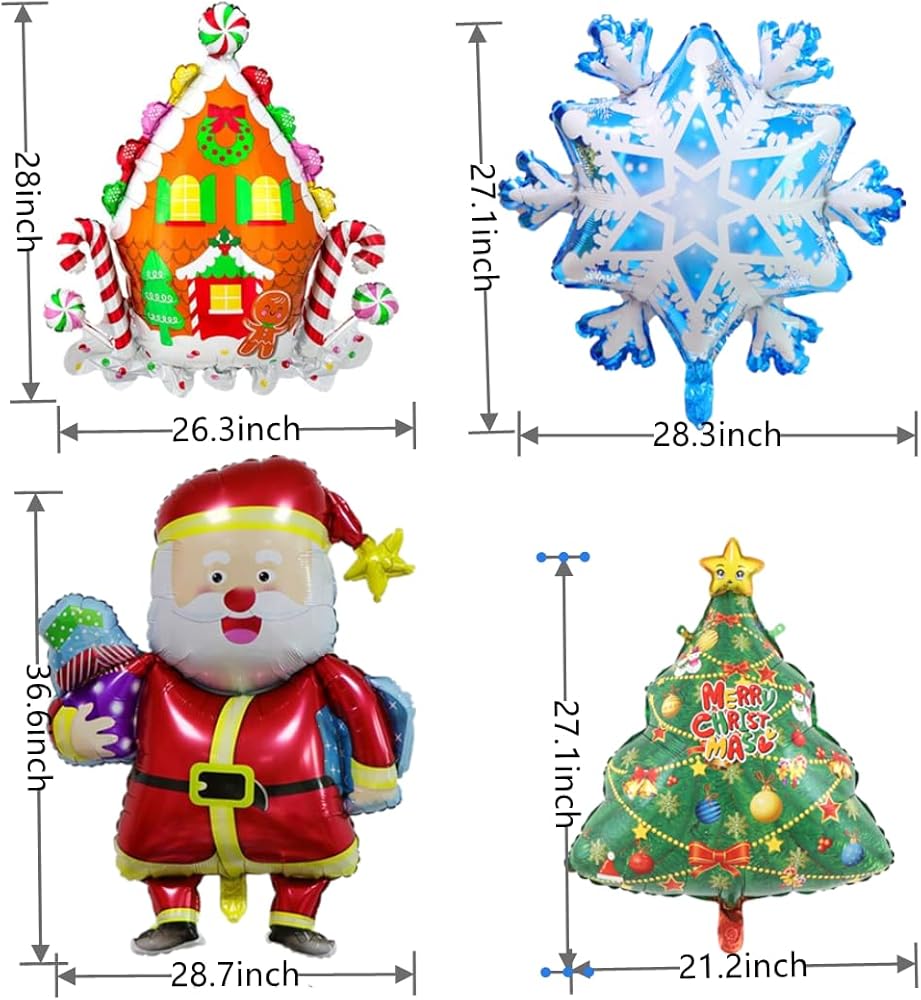 بالونات عالية الجودة: بالونات عيد الميلاد الخاصة بنا مصنوعة من مواد عالية الجودة، قوية ومتينة، ليس من السهل أن تنفجر أو تتلاشى، ويمكن ملؤها بالهواء أو الهيليوم.