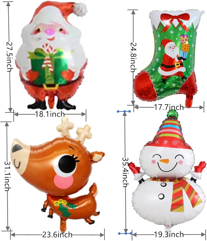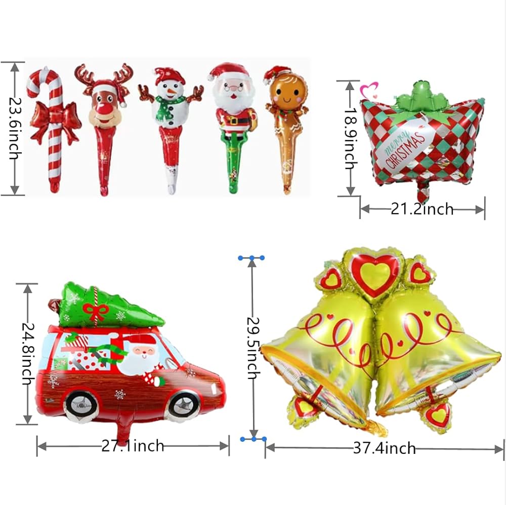 بالونات عيد الميلاد، 16 قطعة بالونات كبيرة من رقائق عيد الميلاد، جوارب سانتا الرنة ثلج قصب حلوى شجرة عيد الميلاد هدية عيد الميلاد بالون لعيد الميلاد وعطلة رأس السنة الجديدة وزينة حفلات الشتاء