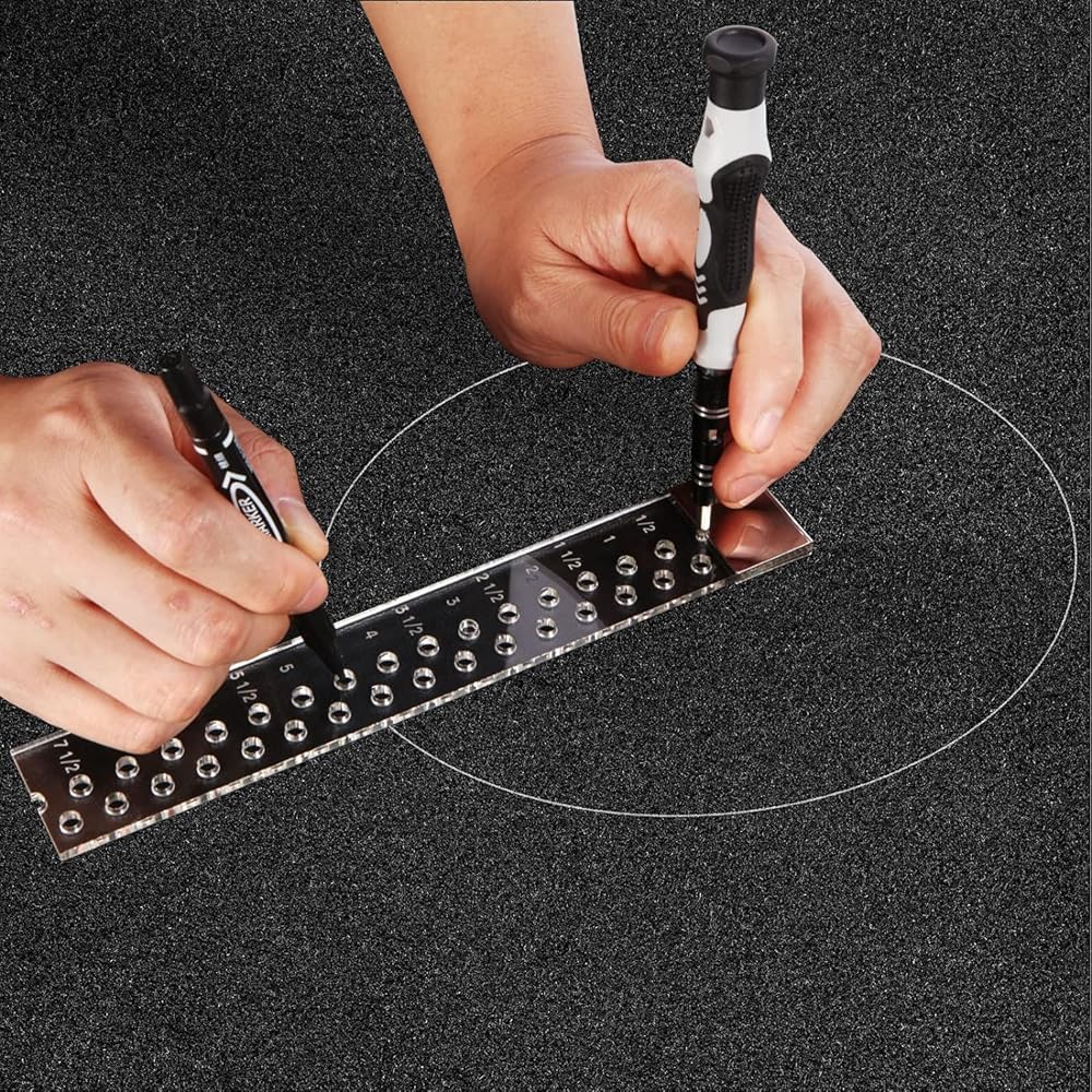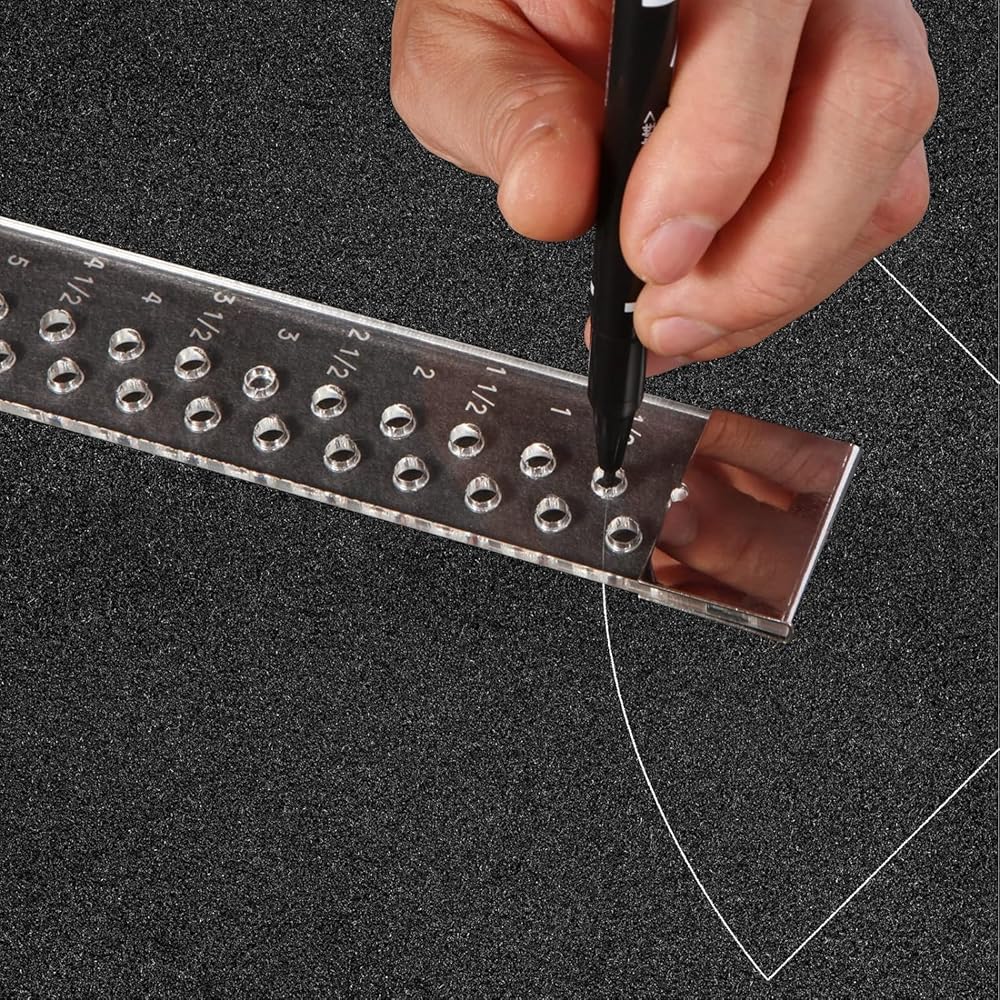 Size range:Leather patterning ruler with holes located every 1/4 inch,distance arrange 1/2-7 1/2.which can allow your to draw a line or circle according to different distance options.