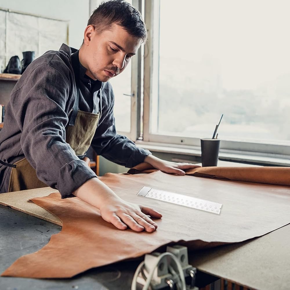 Clear and Visible Mark:Our leather patterning ruler guide have very clear printed numbers and mark hole that are easy use on the ruler guide and are easy to read against almost any shirt color.