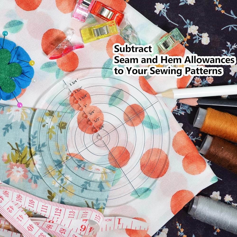 • 【Perfect seam tool】Suitable for sewing,quilting,seaming,cutting,splicing and other craft projects.Using round seam allowance ruler can easily add seam allowance, modify seam allowance, or draw stitches on the pattern for a draft pattern. Accurately increasing or reducing seam allowance may be tricky, but now we have the perfect gadget.