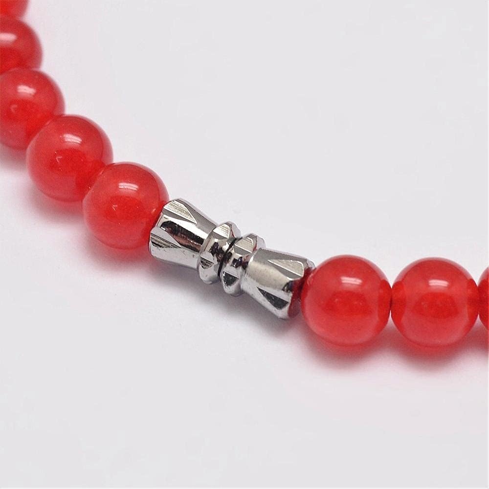 الوصف: قلادة خرز متدرج من اليشم الطبيعي الماليزي، مصبوغ، مع مشابك لولبية معدنية، بلاتينيوم، أحمر، المقاس: حوالي 46.5 سم، الخرز: حوالي 6 ~ 12 مم.