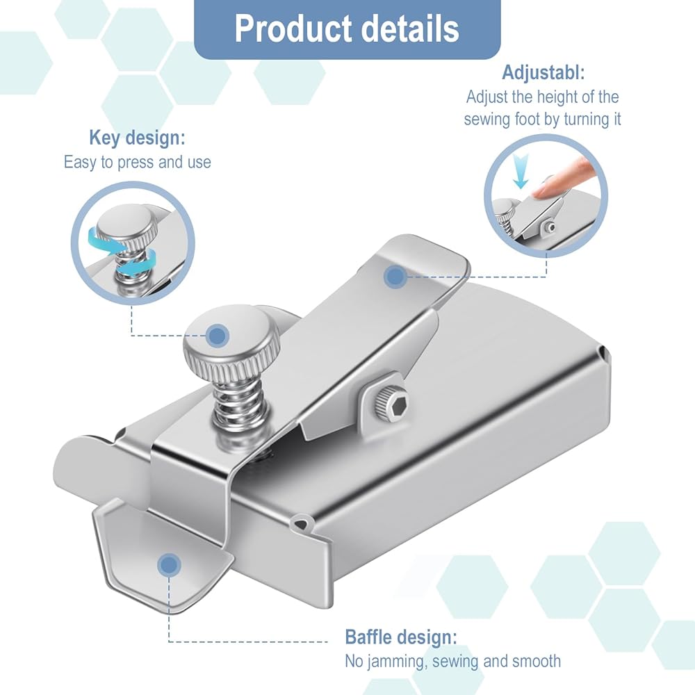 دليل الدرزات المغناطيسية: ضع المغناطيس على لوحة الحلق الخاصة بآلة الخياطة الخاصة بك للحصول على عرض درزات متناسق في كل مرة. على عكس أدلة الدرزات المغناطيسية التقليدية، لن ينحرف دليل الدرزات المغناطيسية عن المسار عند الخياطة من خلال الأقمشة السميكة