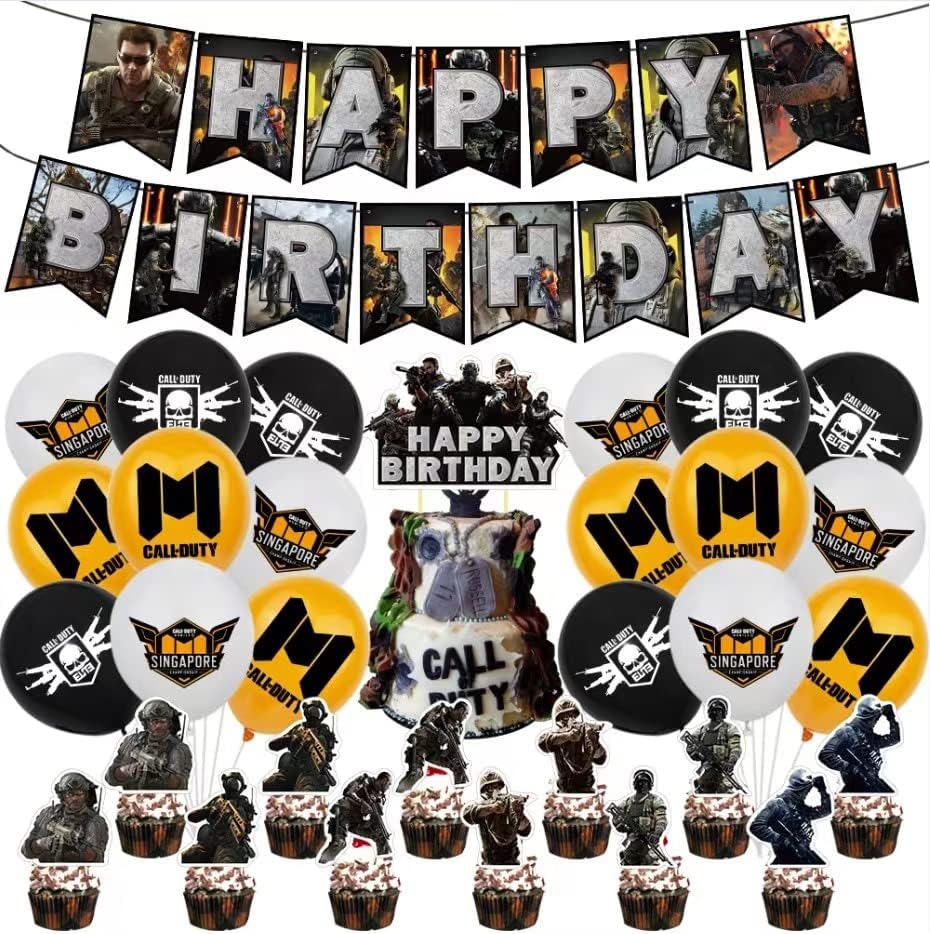1. تشمل المنتجات: لافتة واحدة، 18 بالونة، 12 قطعة علوية صغيرة للكعك، 1 قطعة علوية كبيرة لكعكة عيد ميلاد سعيد